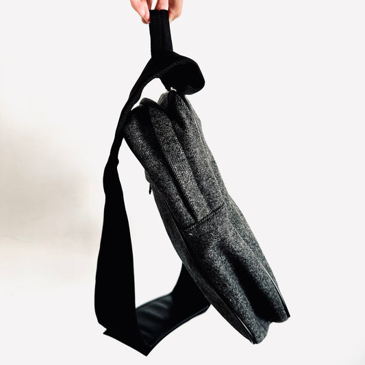 Prada Grey Wool Monogram Logo Backpack Shoulder Sling Bag