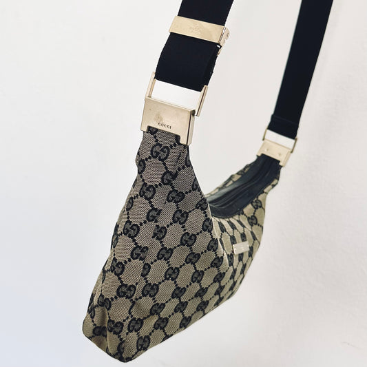 Gucci Black / Ebony GHW Half Moon Crescent GG Monogram Logo Hobo Baguette Shoulder Sling Bag