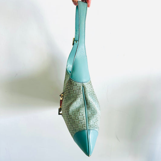 Gucci Jackie Teal GG Monogram Logo Suede & Leather Hobo Vintage Shoulder Bag