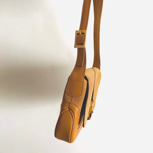 Miu Miu Beige GHW Leather Classic Logo 2-Way Hobo Shopper Shoulder Baguette Cervo Shine Sling Bag