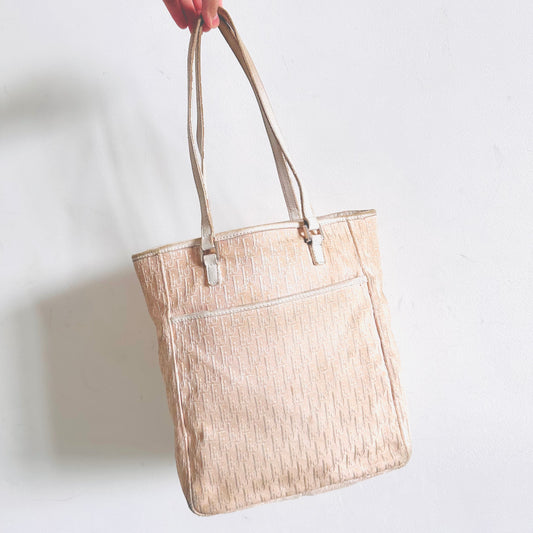 Celine Beige Triomphe Macadam Monogram Logo Vintage Shoulder Tote Bag
