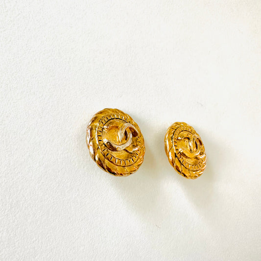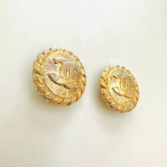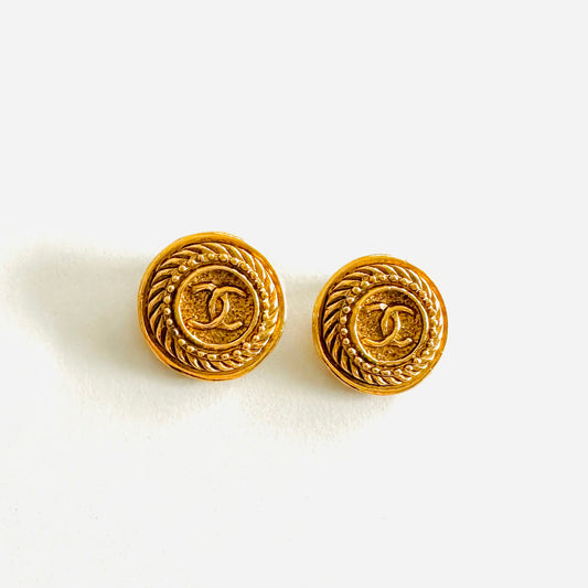 Chanel Giant CC Logo Spiral Signature Classic Large Round Gold Vintage Clip On Earrings