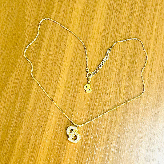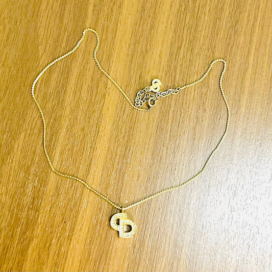 Christian Dior Monogram Logo CD Giant Gold & Crystals Necklace