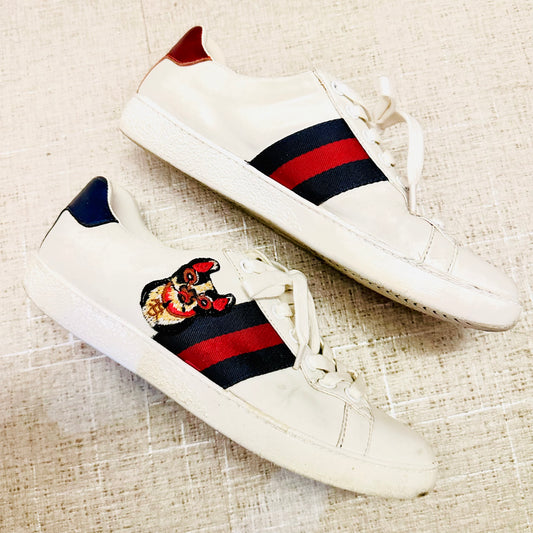 Gucci Ace White Embroidered Embroidery Leather Web Striped Monogram Logo Sneakers Trainers