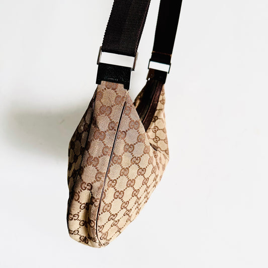 Gucci Beige GG Monogram Logo Hobo Baguette Half Moon Crescent Shoulder Sling Bag