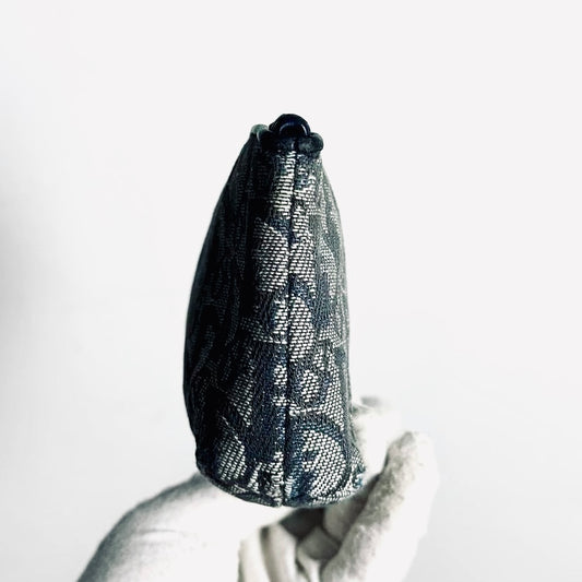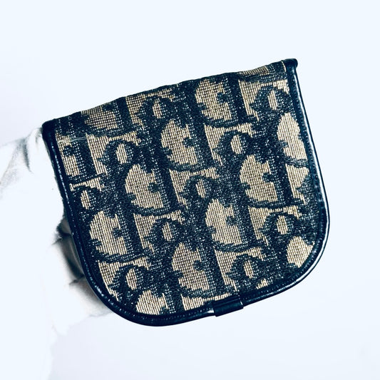 Christian Dior CD Navy Blue GHW Oblique Monogram Logo Flap Coin Pouch Case