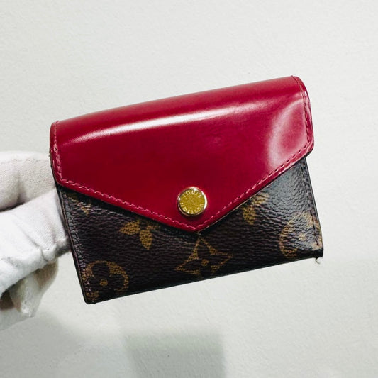Louis Vuitton LV Zoe Monogram Logo & Fuchsia Leather GHW Flap Compact Trifold Wallet
