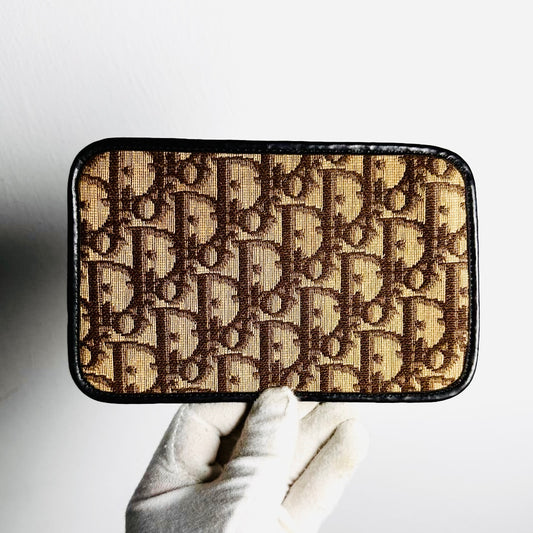 Christian Dior CD Dark Brown GHW Oblique Monogram Logo Vintage Zip Clutch Case Pouch