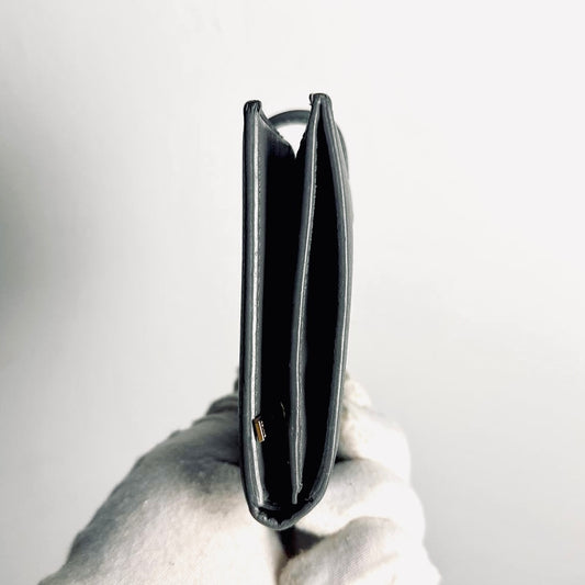 Celine Grey / Gray GHW Grained Calfskin Leather Logo Medium Strap Compact Bifold Wallet