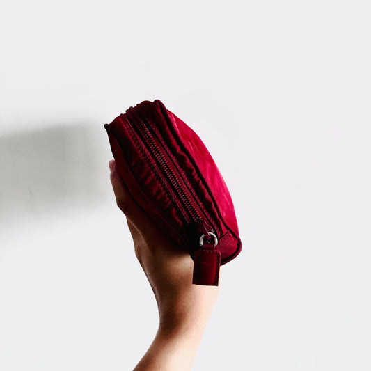Prada Maroon Red Tessuto Monogram Logo Classic Nylon Zip Clutch Pouch Case