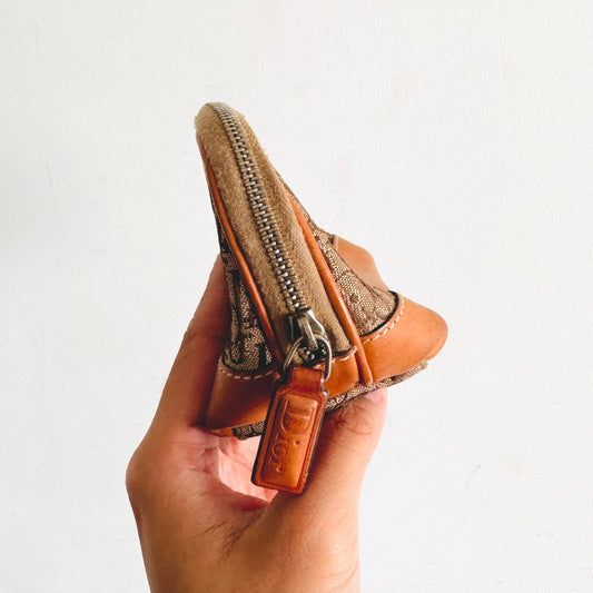 Christian Dior Caramel Brown Oblique Monogram Logo Zip Clutch Pouch Case