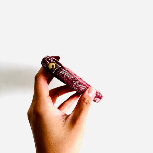 Christian Dior CD Saddle Maroon GHW Oblique Monogram Logo Zip Compact Wallet Pouch Case