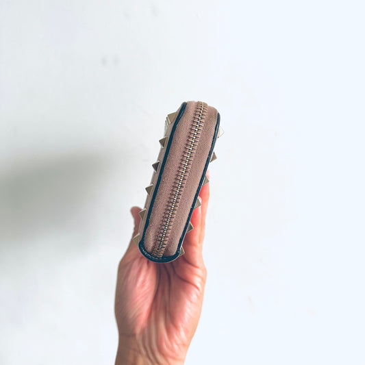 Valentino Garavani Mauve Pink GHW Logo Rockstud Studs Zip Around Continental Zippy Long Wallet