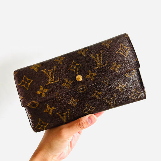 Louis Vuitton LV Sarah Monogram Logo GHW Flap Vintage Long Trifold Wallet