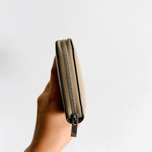 Celine Taupe Logo Drummed Calfskin Leather Large Zippy Zip Around Long Wallet