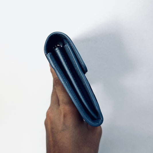 Hermes Bearn Blue Bleu Jean GHW H Logo Epsom Grained Leather Trifold Flap Long Wallet
