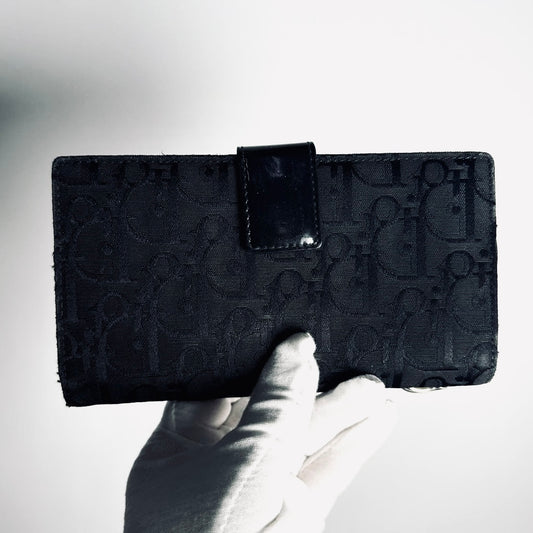 Christian Dior CD Saddle Black Oblique Monogram Logo Flap Long Bifold Wallet