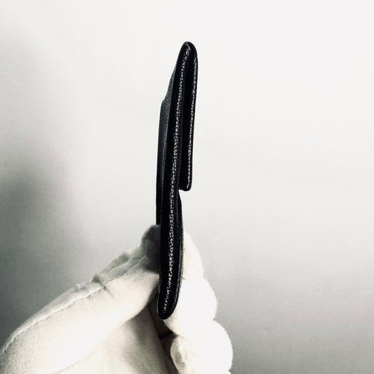 Hermes Bastia Black Classic Chevre Leather Flap Coin Purse Wallet