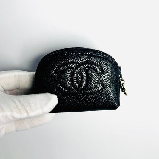 Chanel Black GHW Giant CC Logo Caviar Mini Zip Pouch Clutch Case