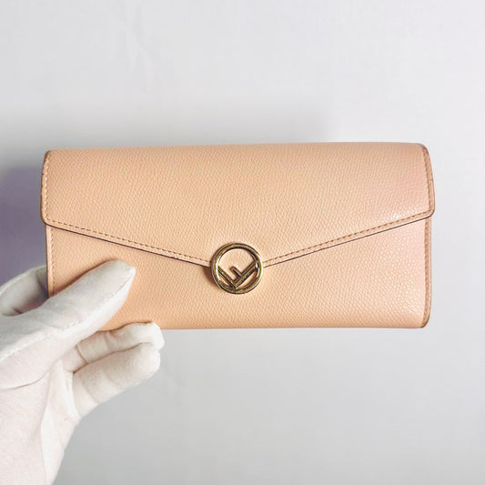 Fendi Blush Pink GHW Giant FF Monogram Logo F-Is Calfskin Leather Flap Long Wallet
