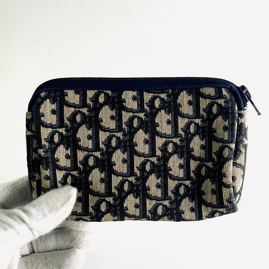 Christian Dior CD Navy Blue GHW Oblique Monogram Logo Zip Clutch Pouch Case