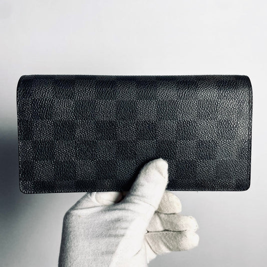 Louis Vuitton LV Brazza Damier Graphite Monogram Logo Long Bifold Flap Wallet