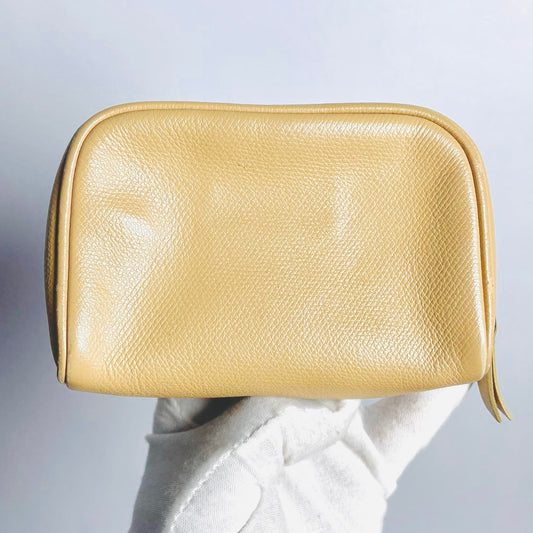 Chanel Beige GHW Caviar CC Monogram Logo Zip Toiletry Cosmetic Pouch Clutch Case 8s