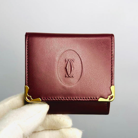 Cartier Must / Mast de Cartier Maroon Burgundy GHW Smooth Leather Flap Coin Purse Compact Wallet
