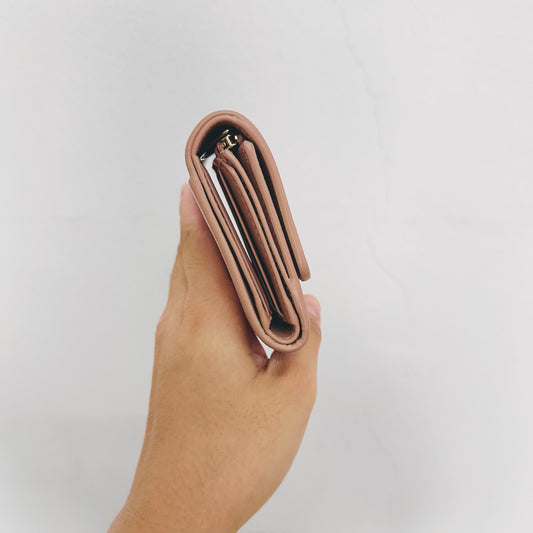Chanel Blush Pink GHW CC Logo Grained Calfskin Vintage Compact Trifold Flap Wallet 8s