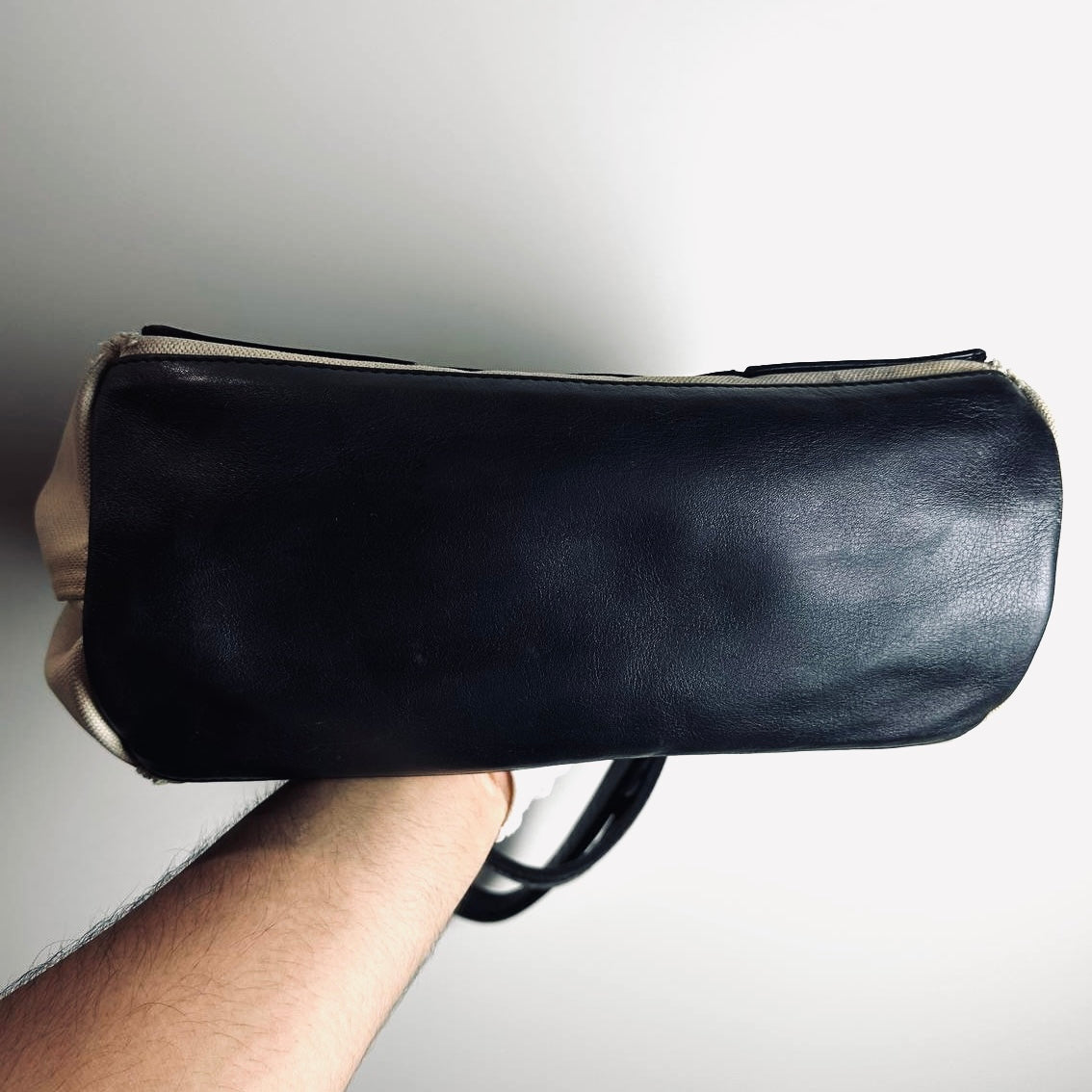 This has a zip pouch attachment and central compartment. This measures 30x24x17cm. This comes with front logo, interior stamping and model code.