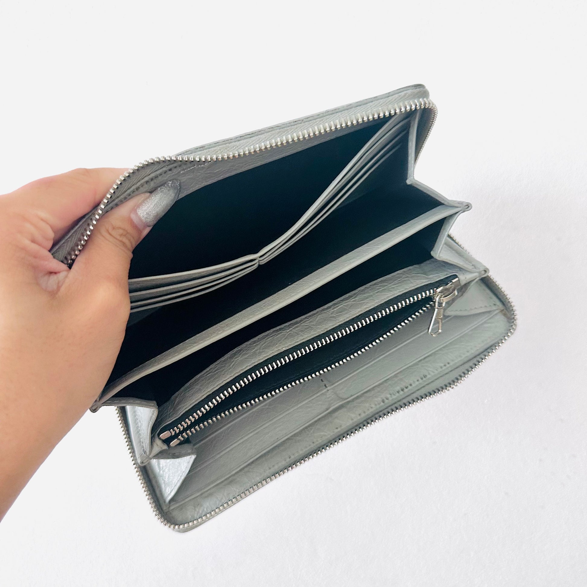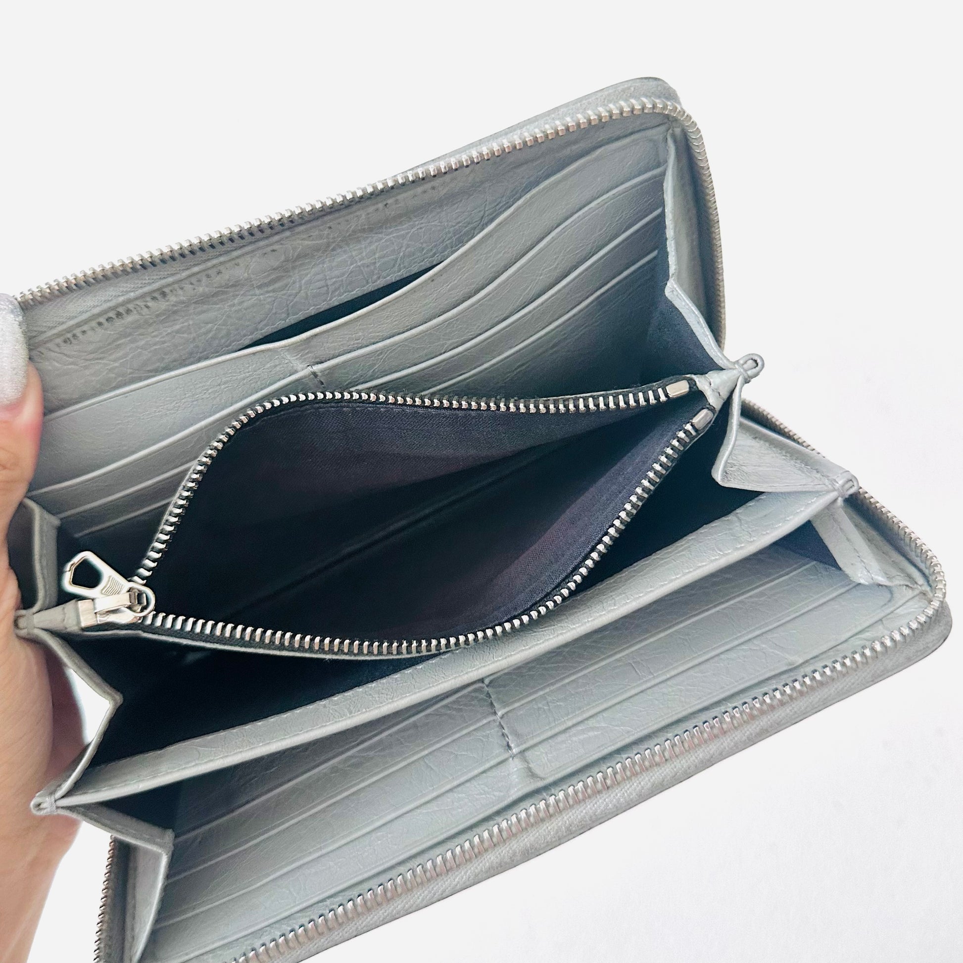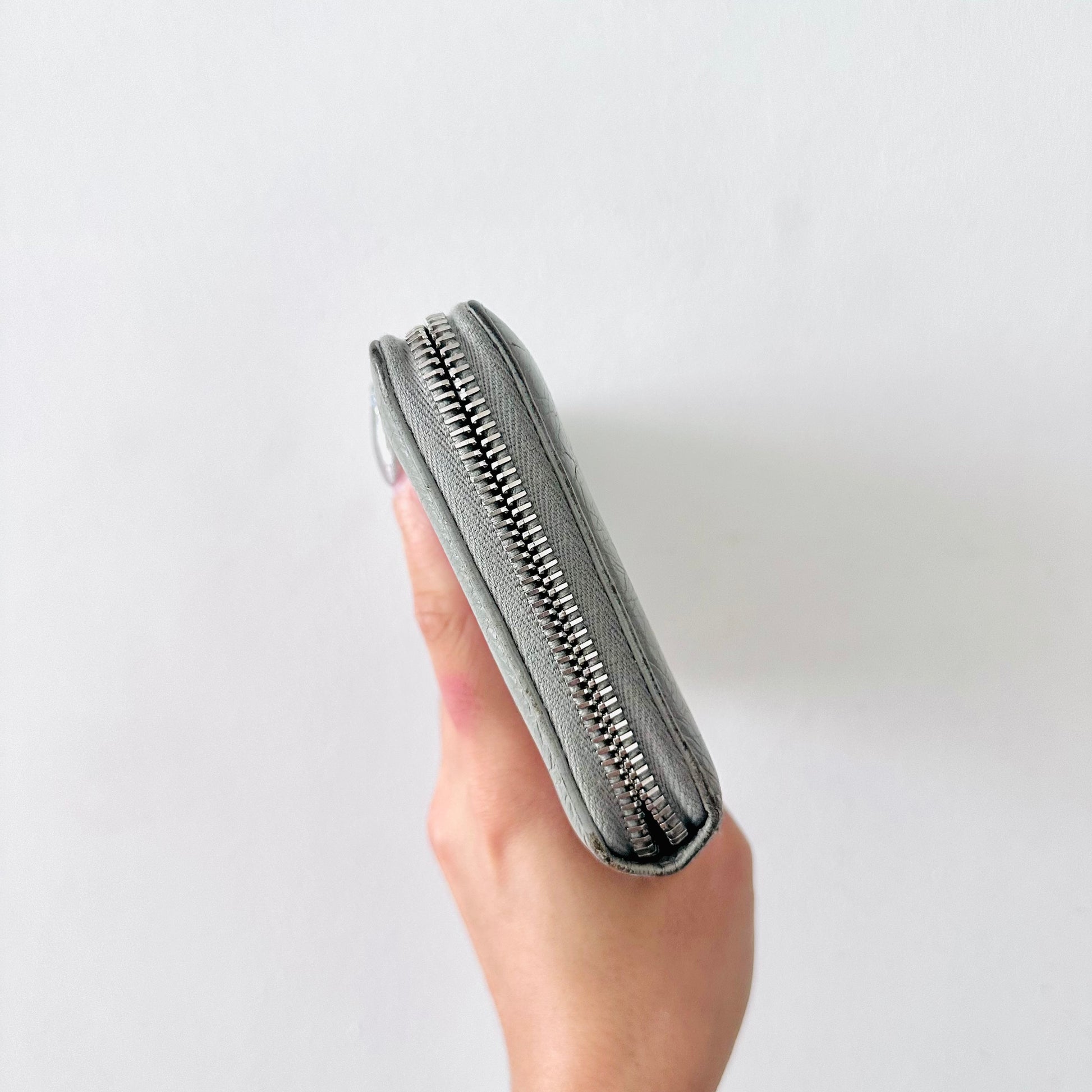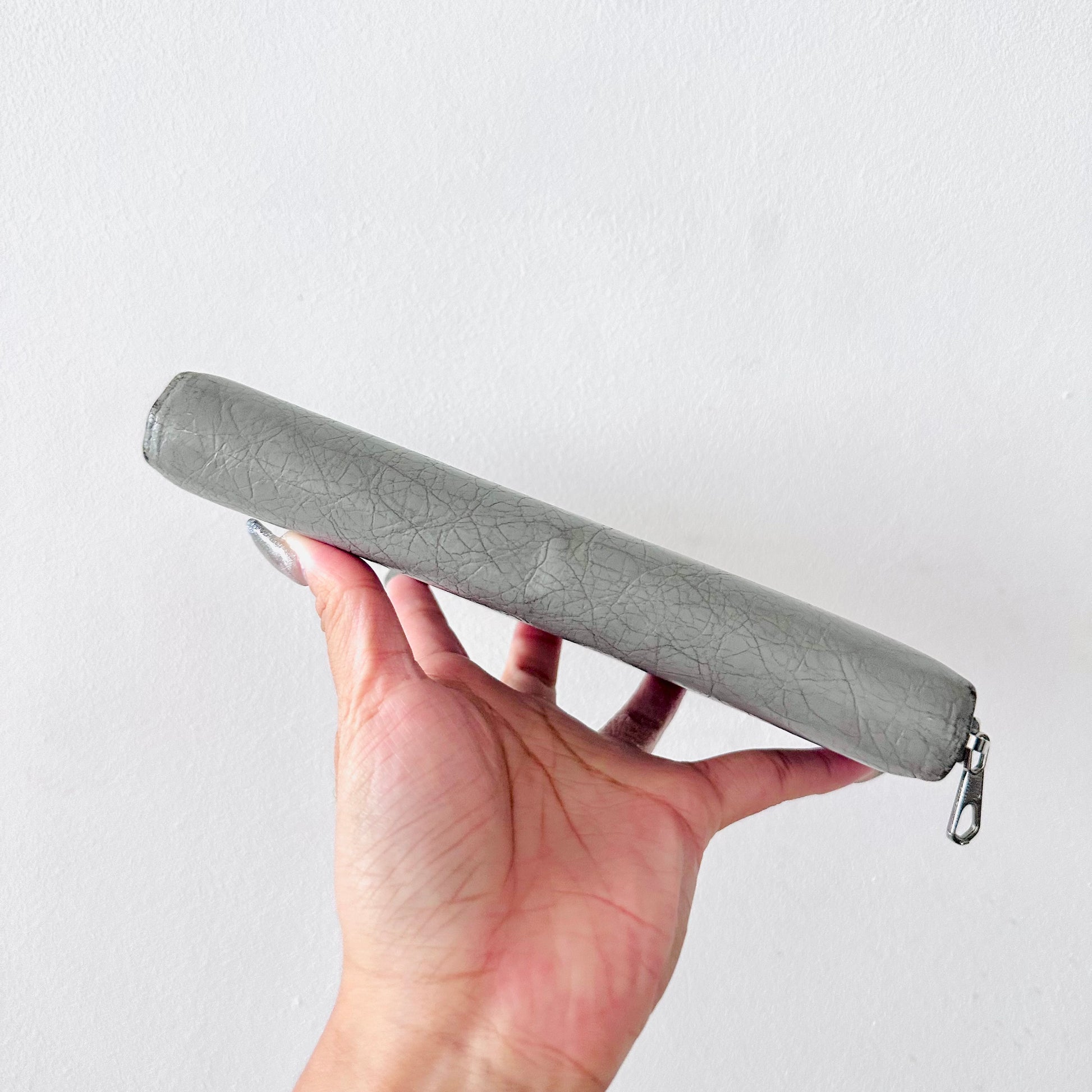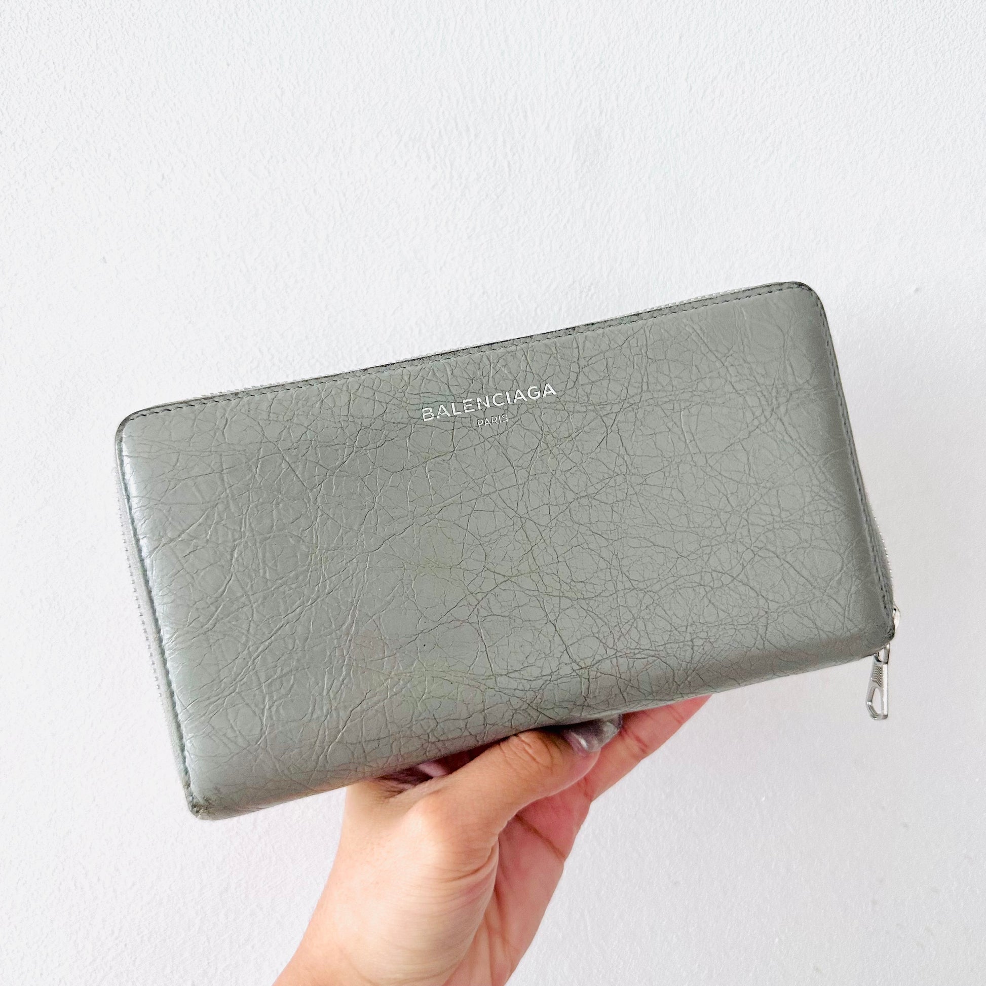 Balenciaga Grey Monogram Logo Embossed Leather Zippy Zip Around Wallet