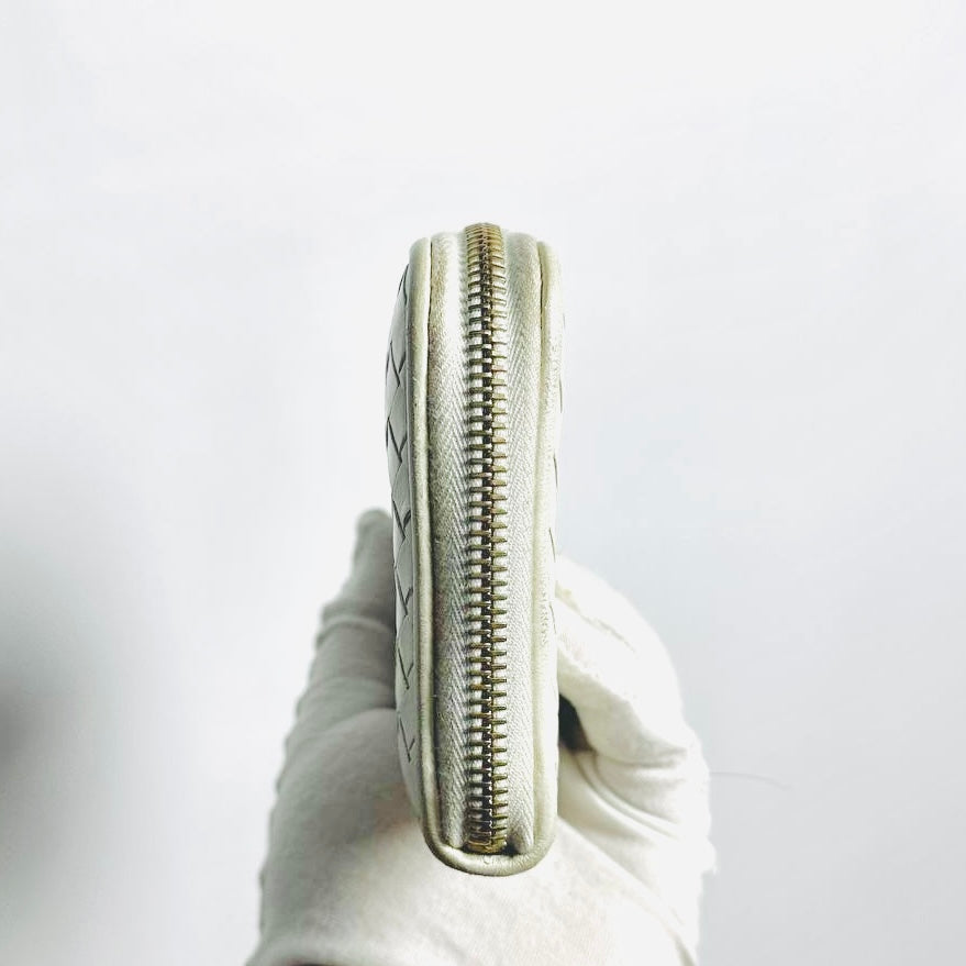 Bottega Veneta BV Continental White GHW Intrecciato Nappa Woven Leather Zip Around Zippy Long Wallet