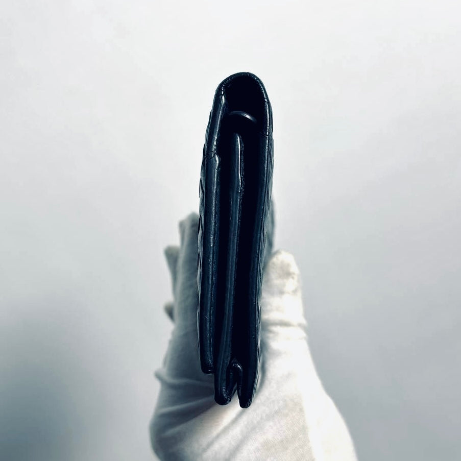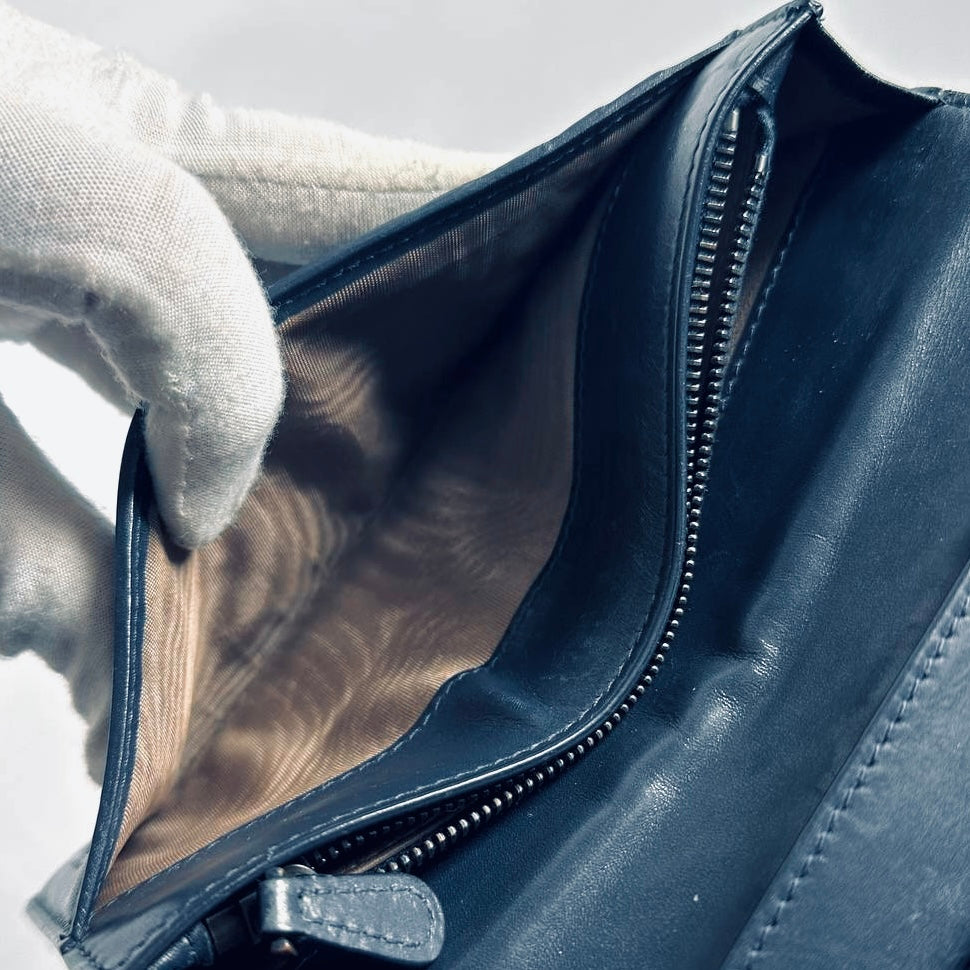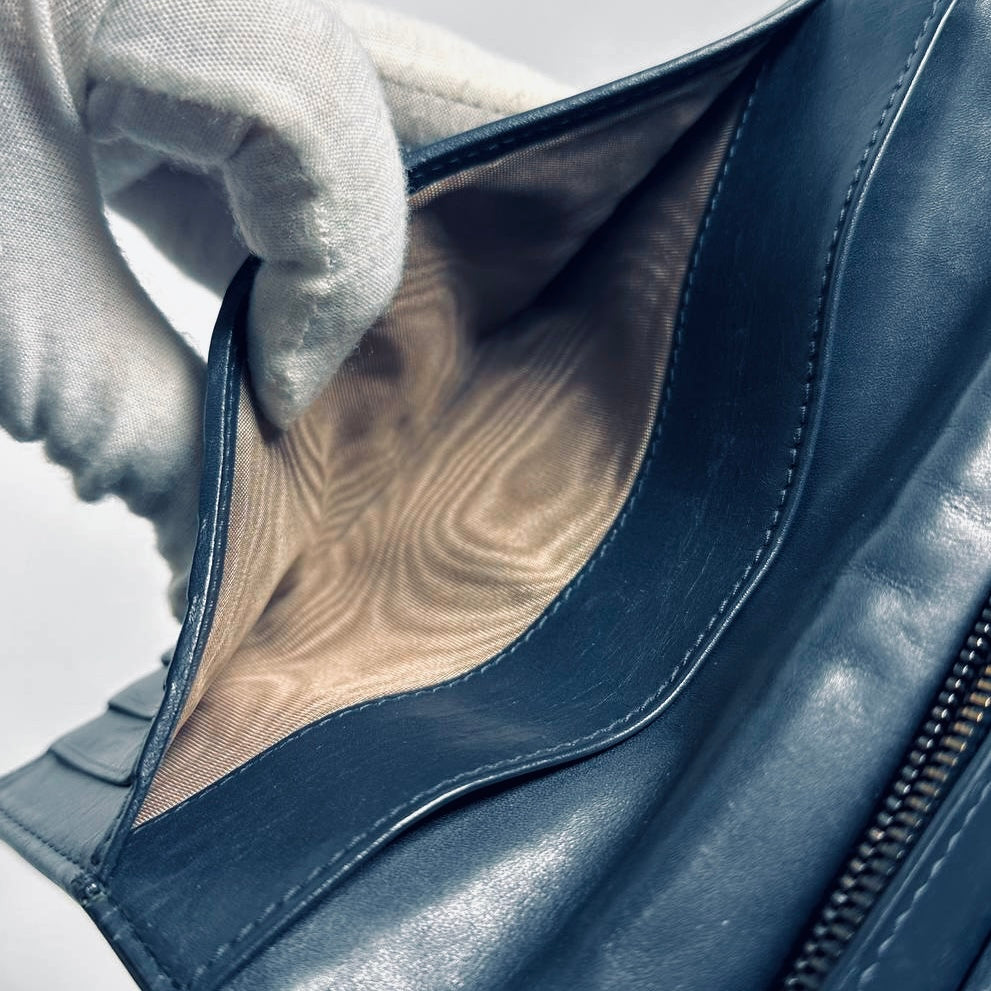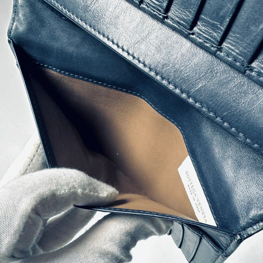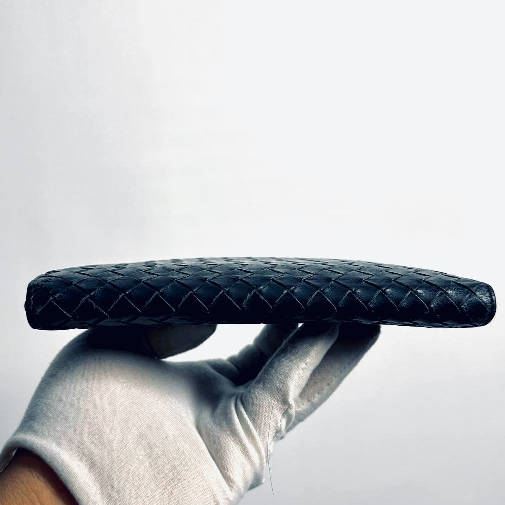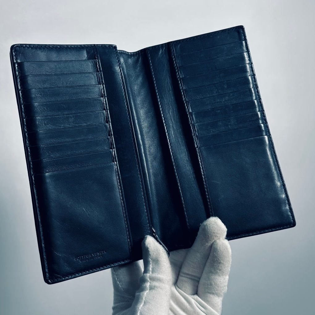 Bottega Veneta BV Navy Blue Intrecciato Nappa Woven Leather Long Flap Bifold Wallet