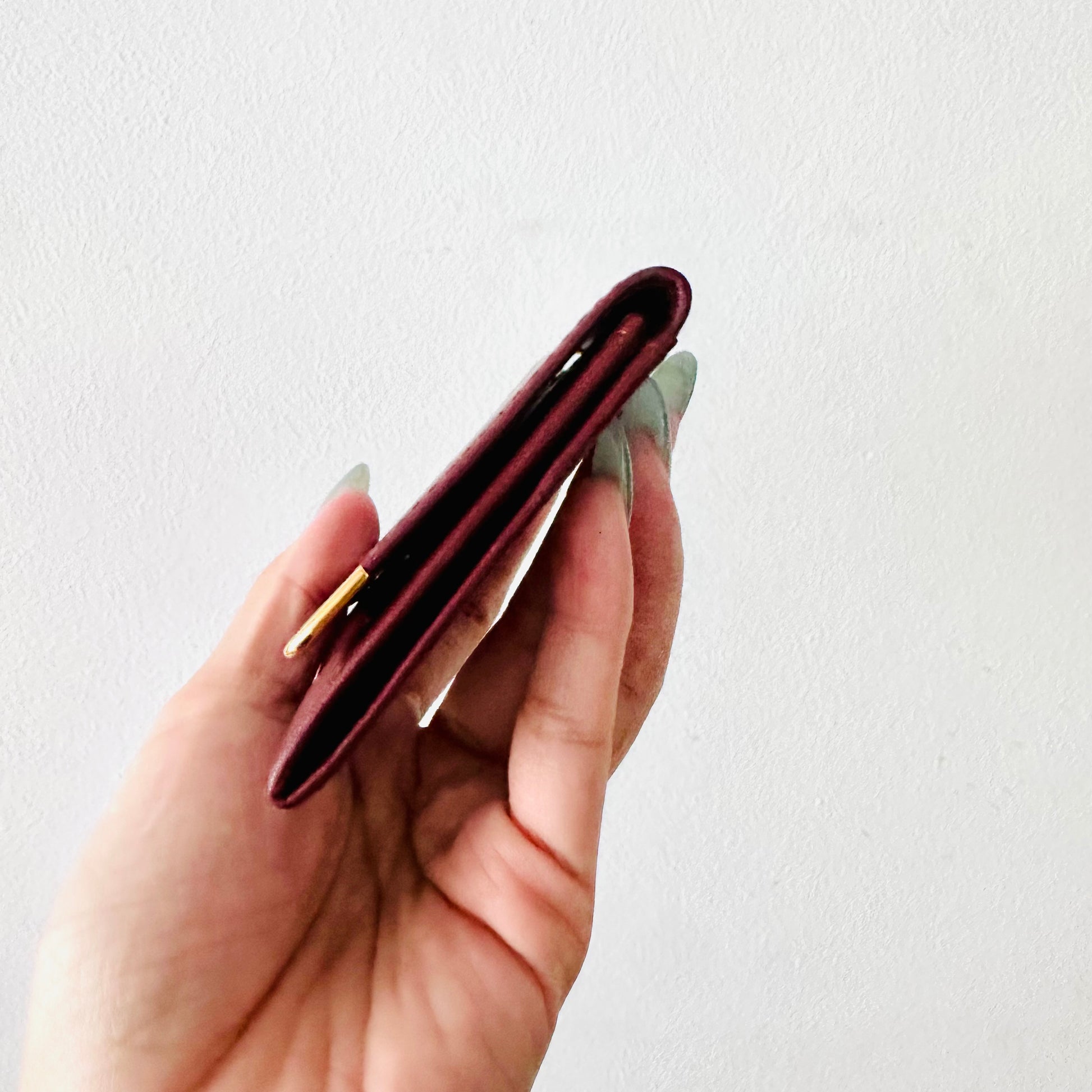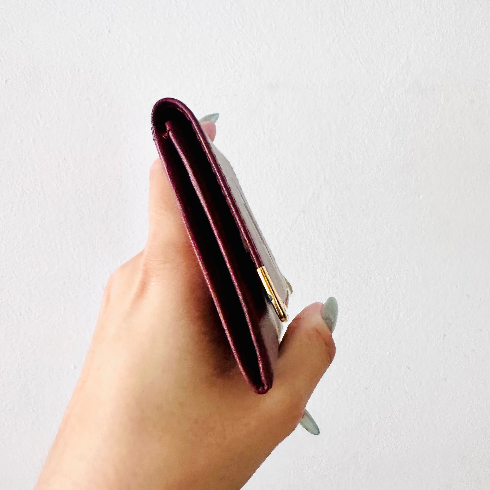 Preloved 9.6/10. This has a back slip pocket, button closure, central compartment and slip pocket. This measures 9x9x1cm.