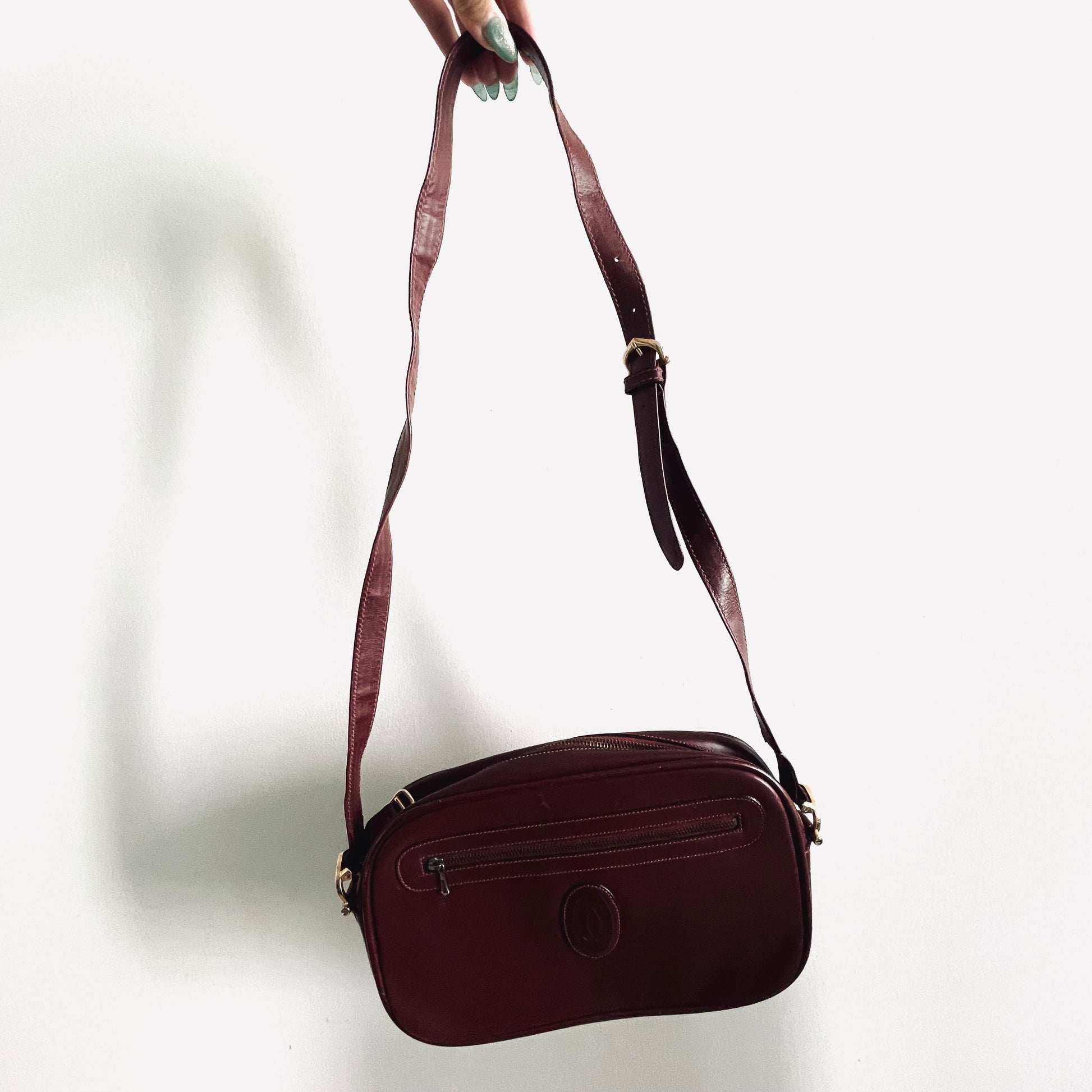 Cartier Mast / Must de Cartier Burgundy Maroon Red GHW Smooth Leather Shoulder Sling Bag