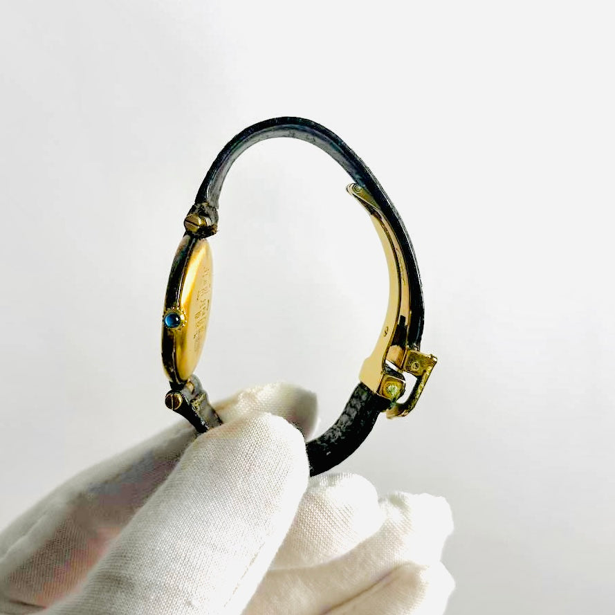 Cartier Must De Vendome Vermeil Gold Round Dial Black Embossed Leather Strap 30MM Quartz Watch