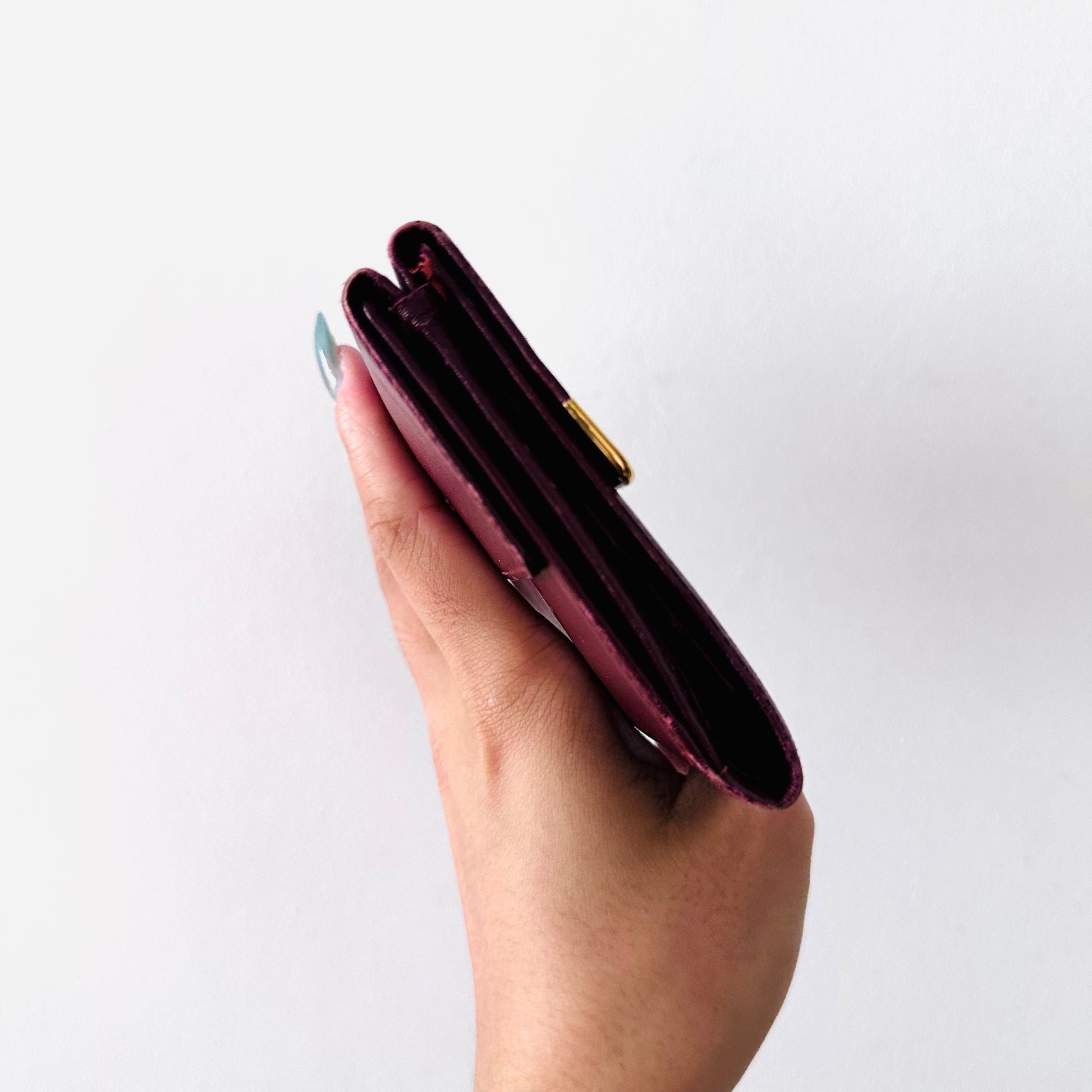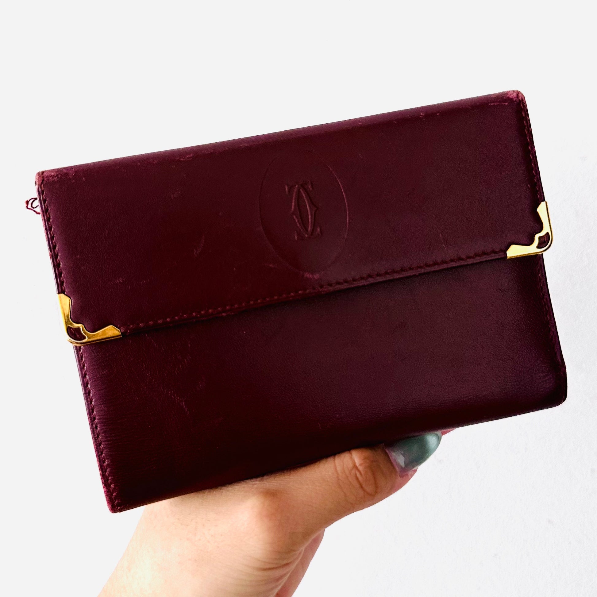 Cartier Must / Mast de Cartier Burgundy Red Maroon GHW Smooth Leather Flap Trifold Compact Wallet