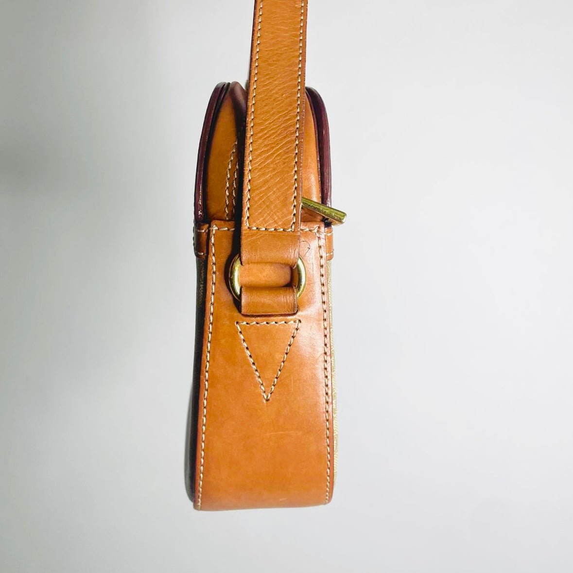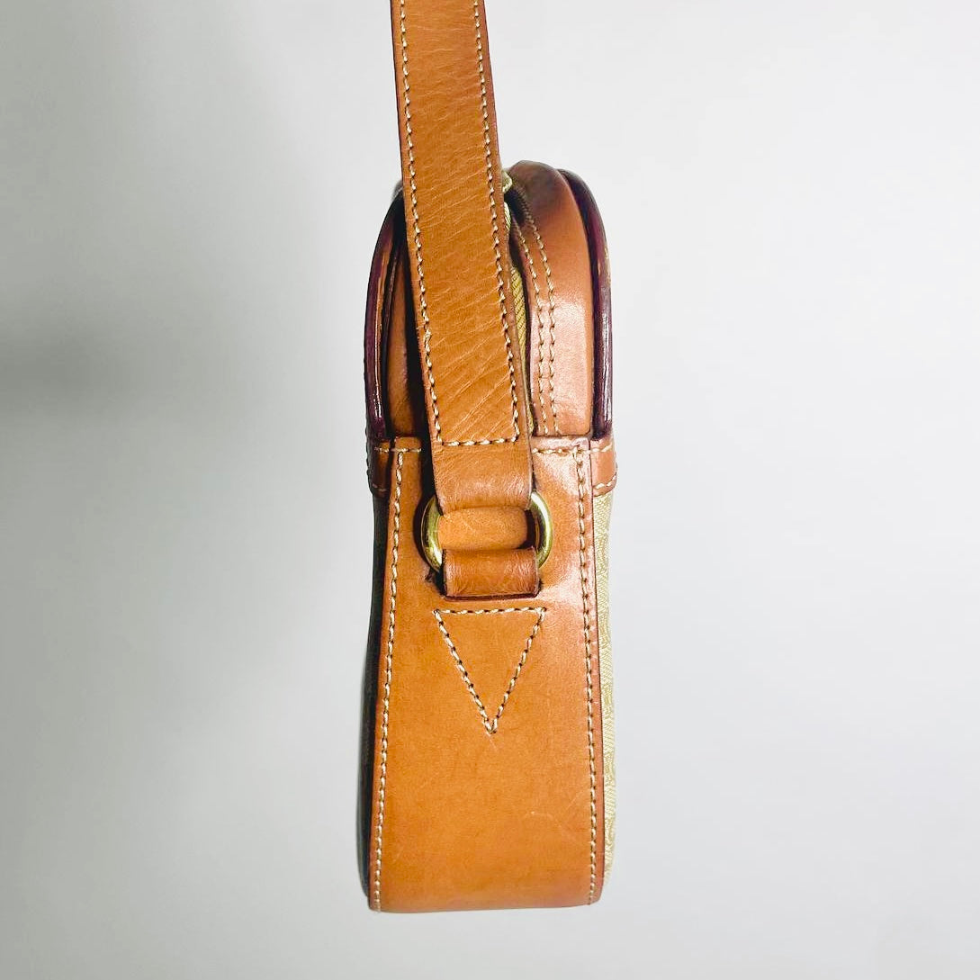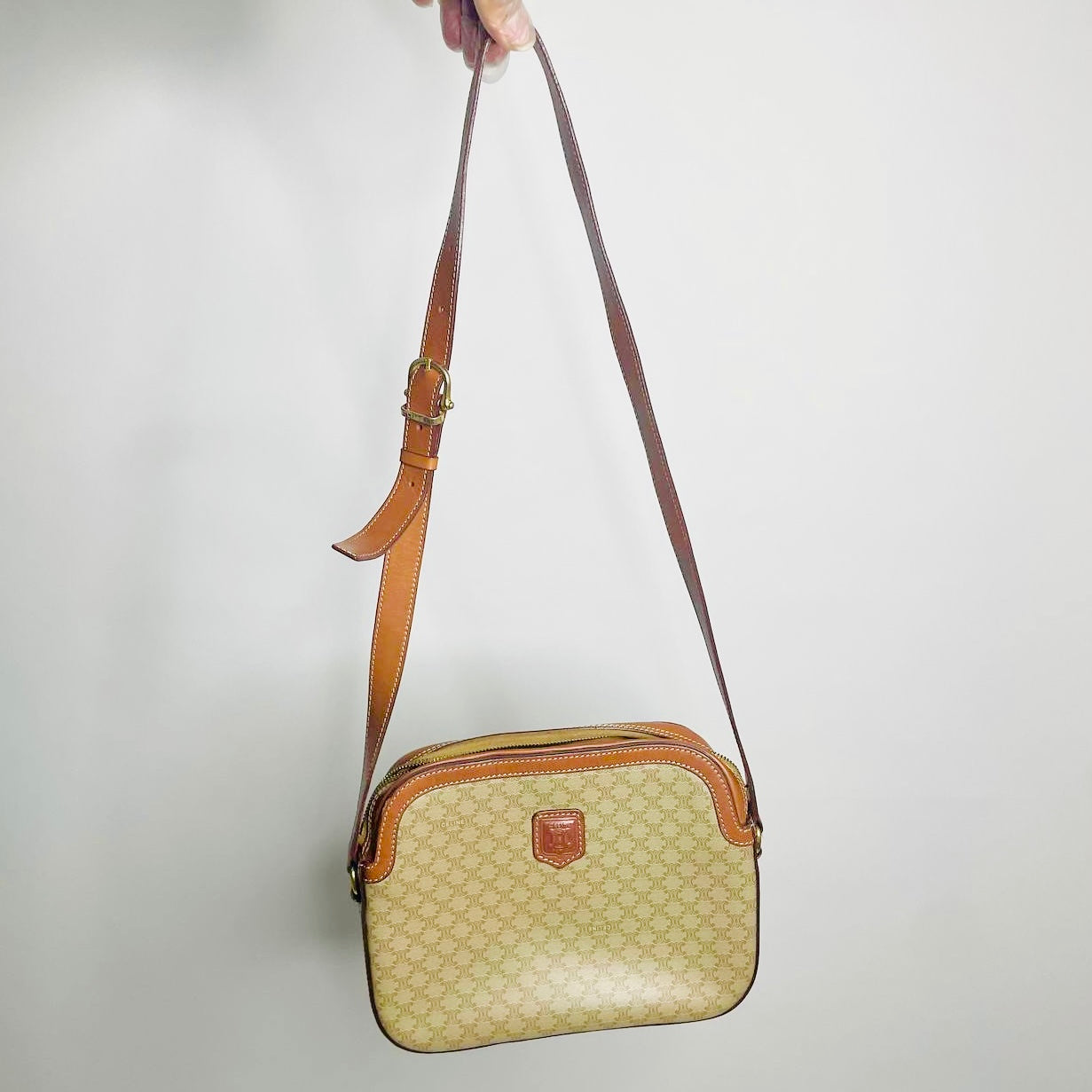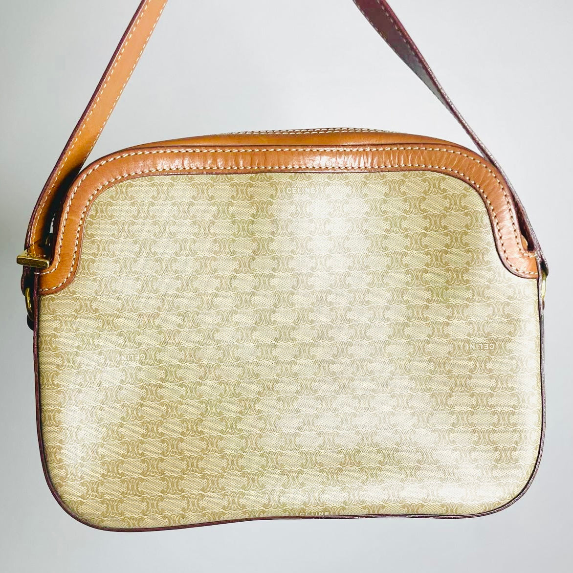 Celine Beige Triomphe Macadam Monogram Logo GHW Zip Camera Shoulder Sling Bag