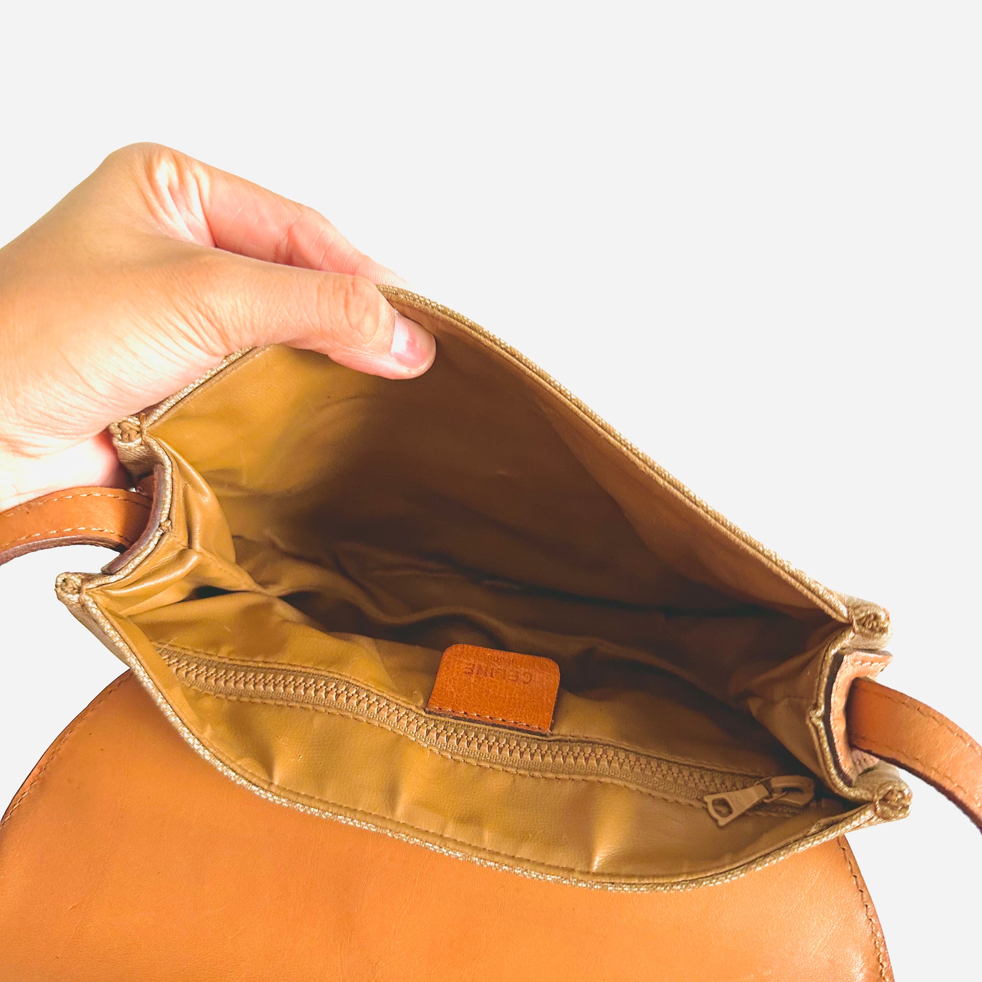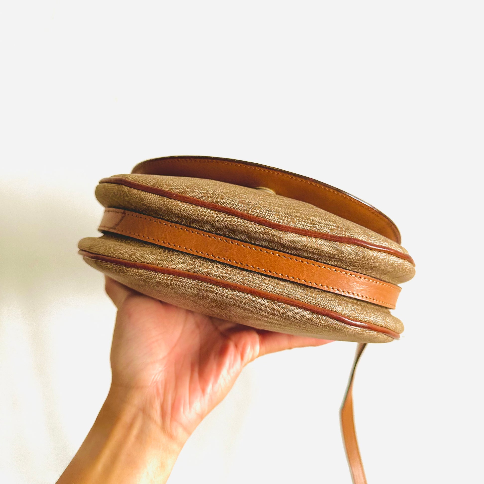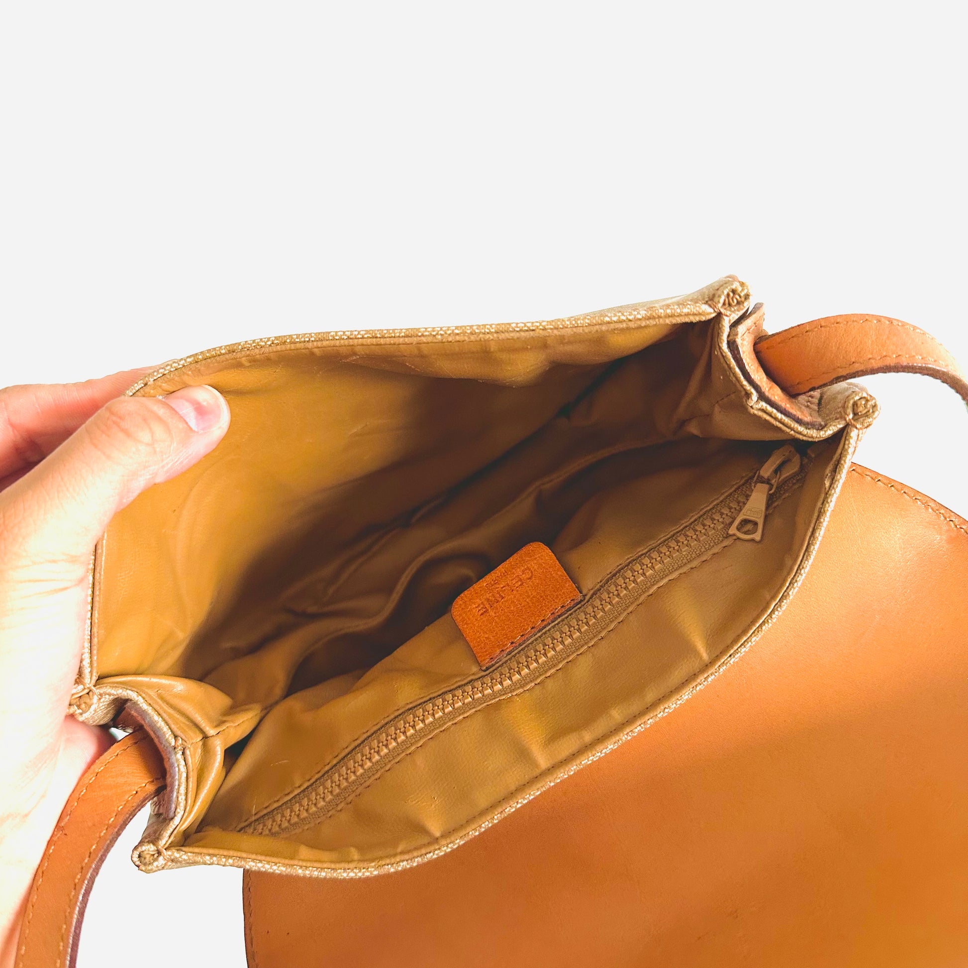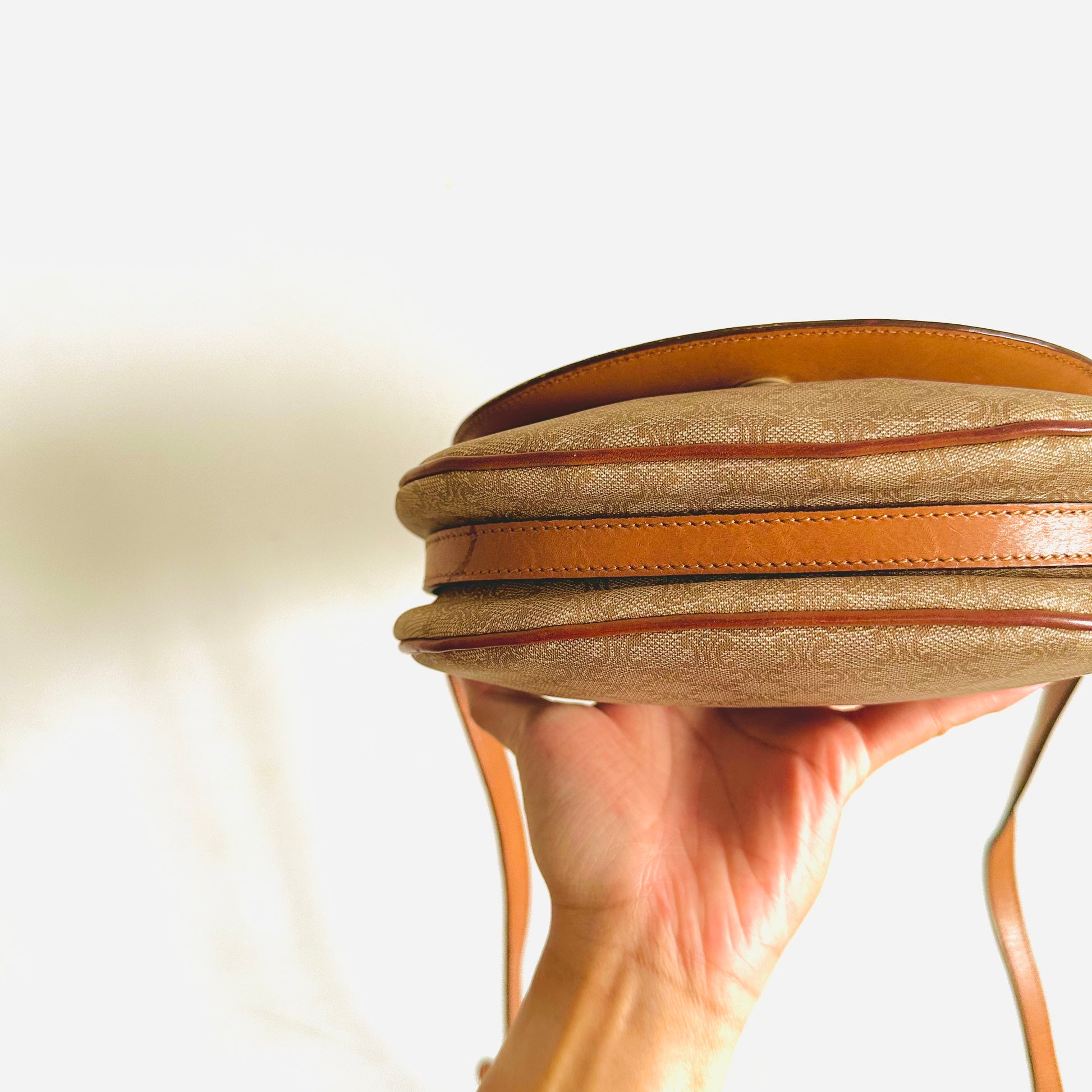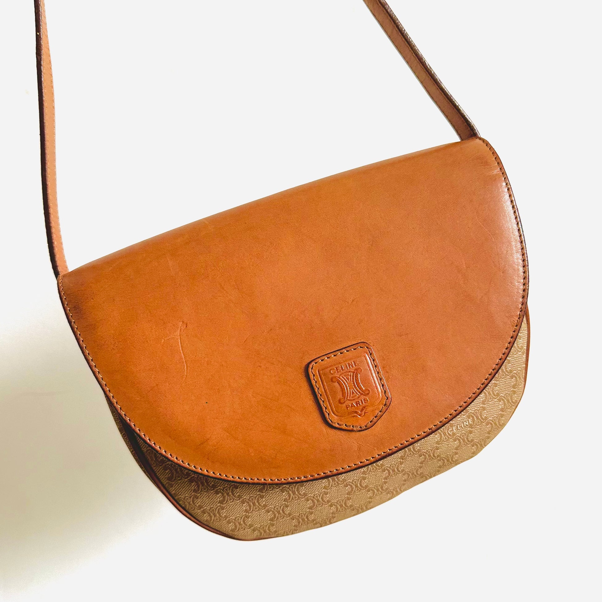 Celine Beige Triomphe Macadam Monogram Logo & Leather Vintage Flap Shoulder Sling Bag