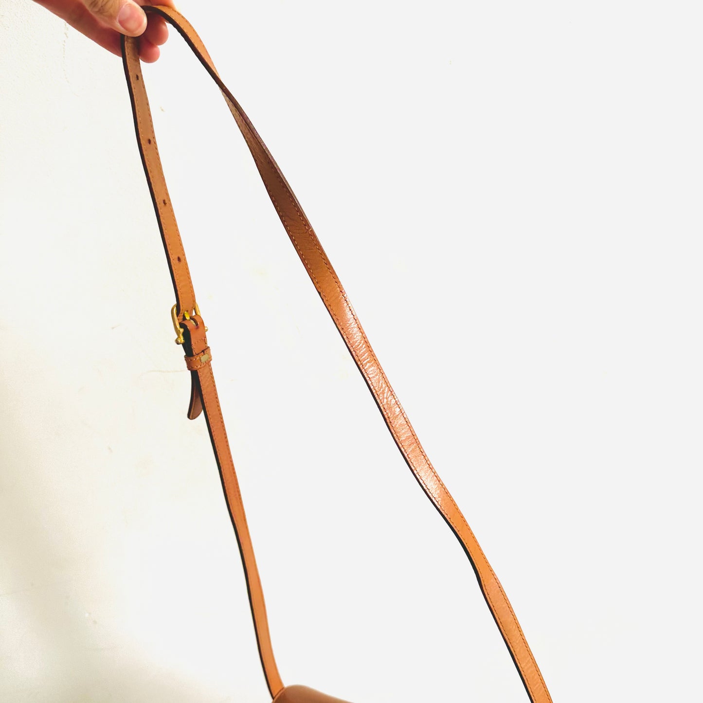 Preloved 9.3/10. This has an adjustable strap, magnetic button flap closure, central compartment and zip pocket. This measures 21x15x6cm.