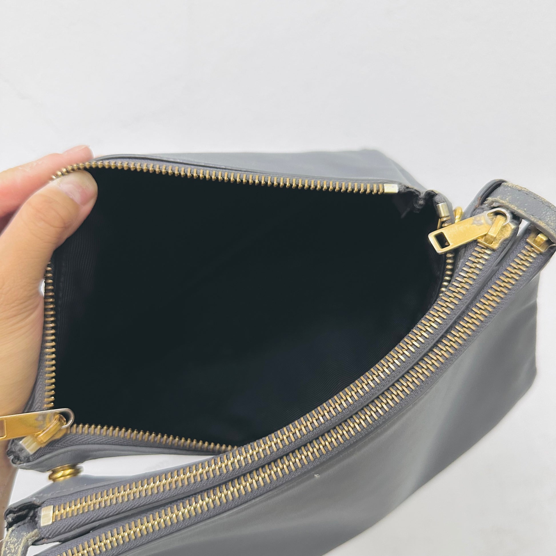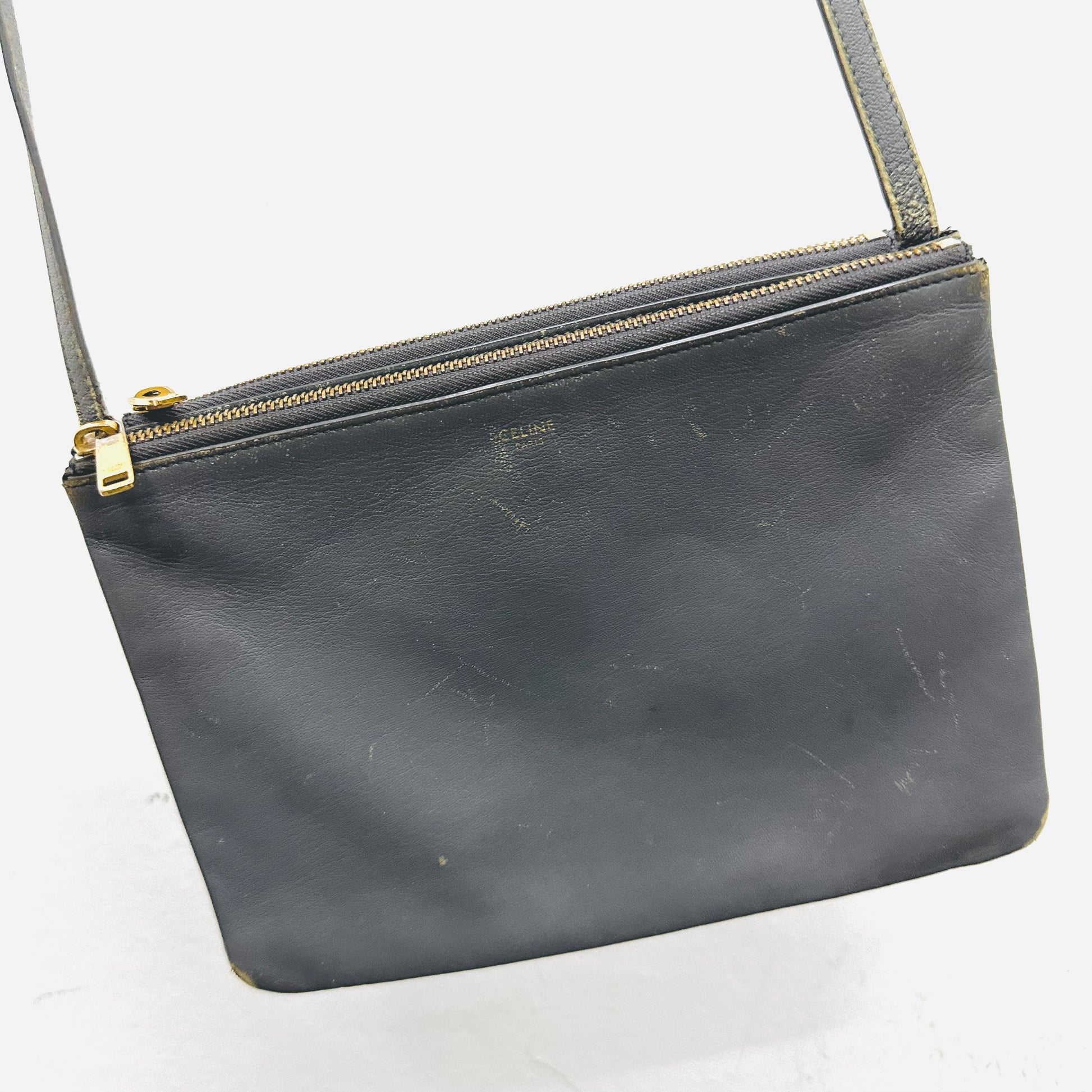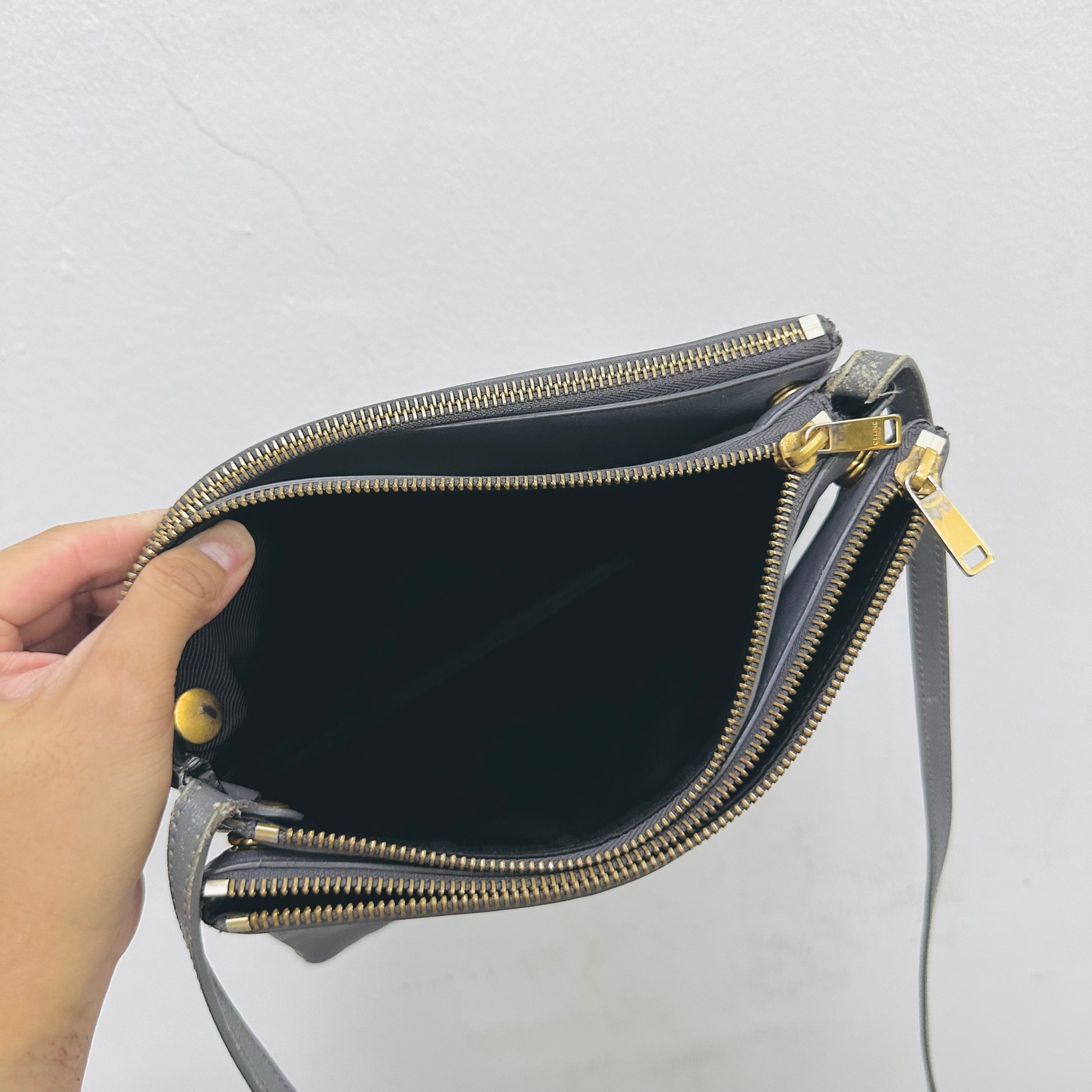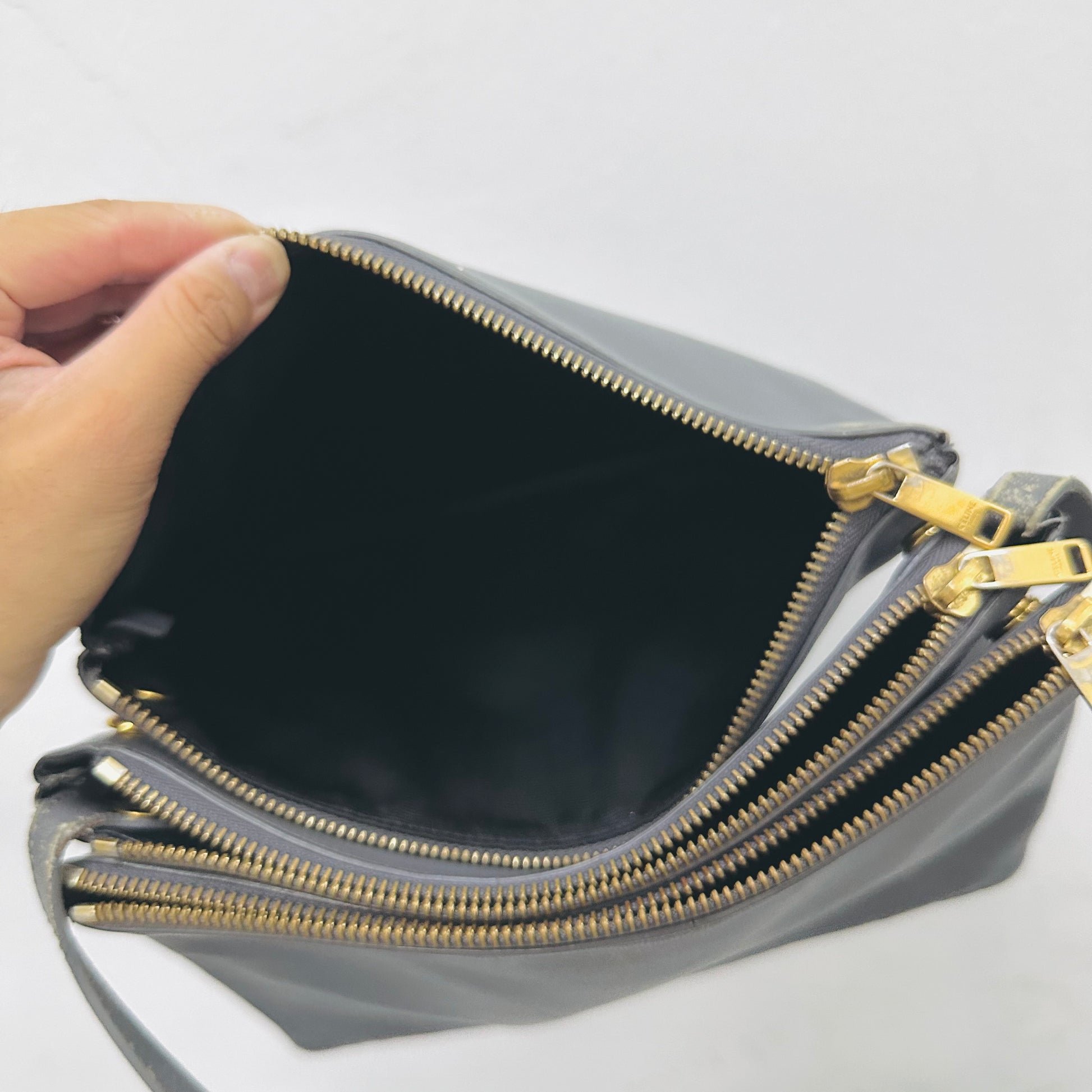 Celine Grey GHW Large Trio Lambskin Monogram Logo Shoulder Sling Bag / Pouch Clutch Case