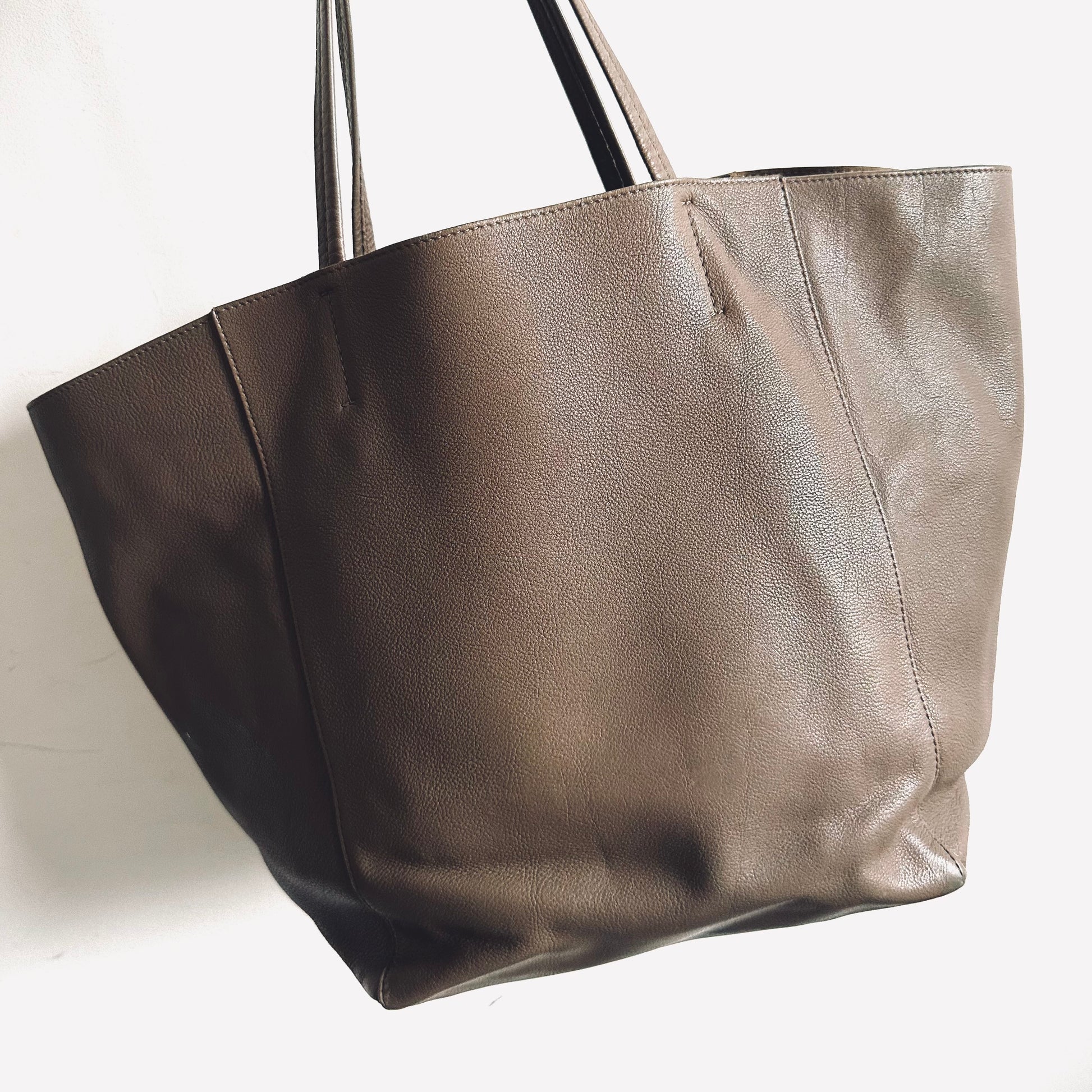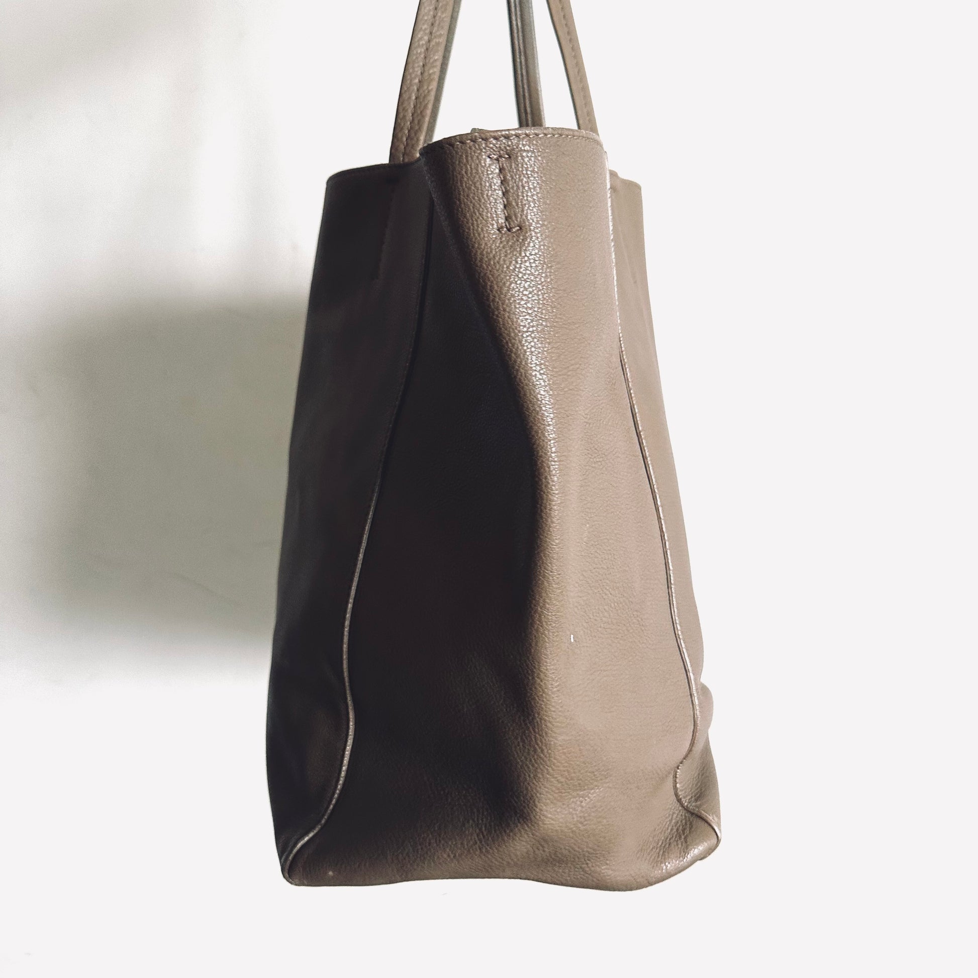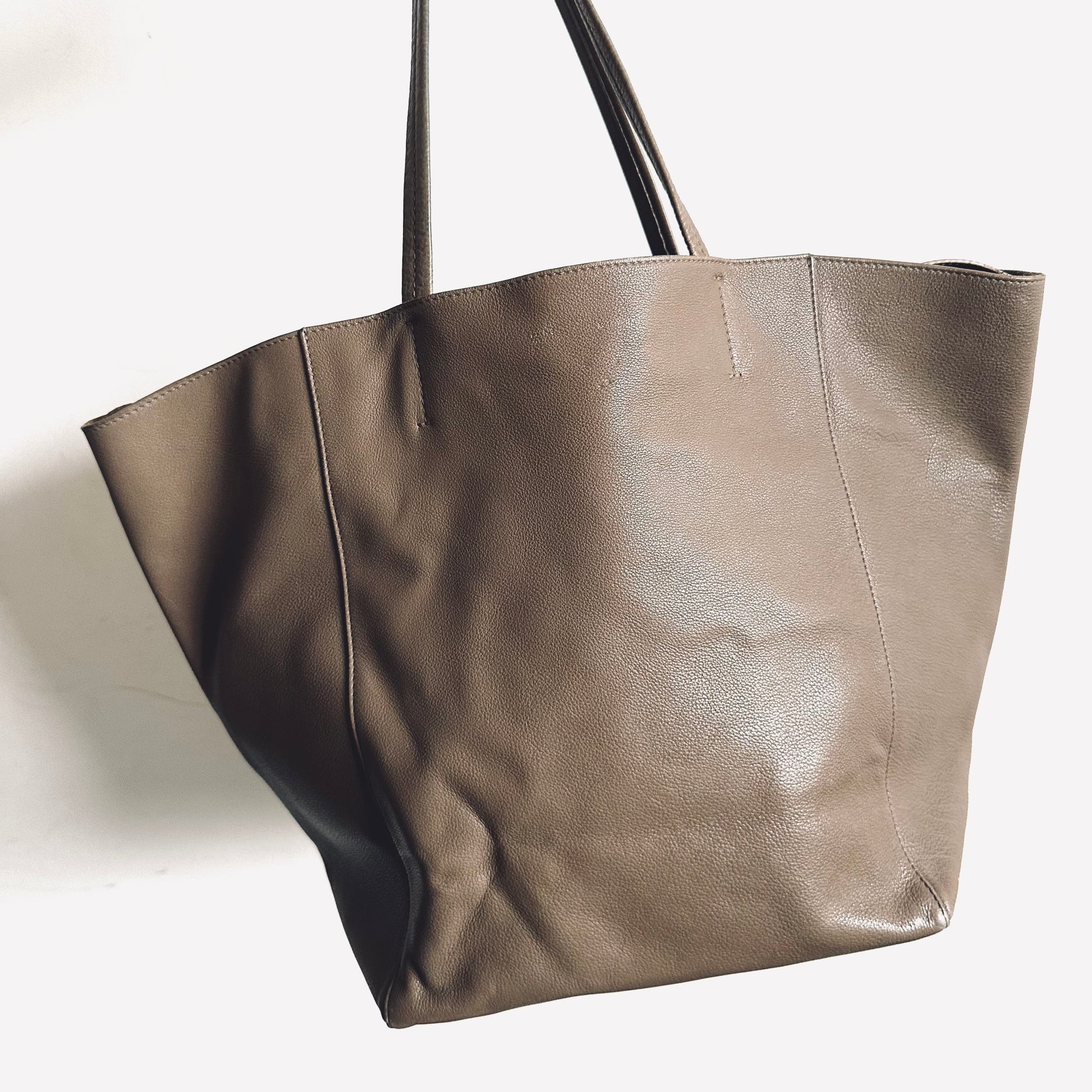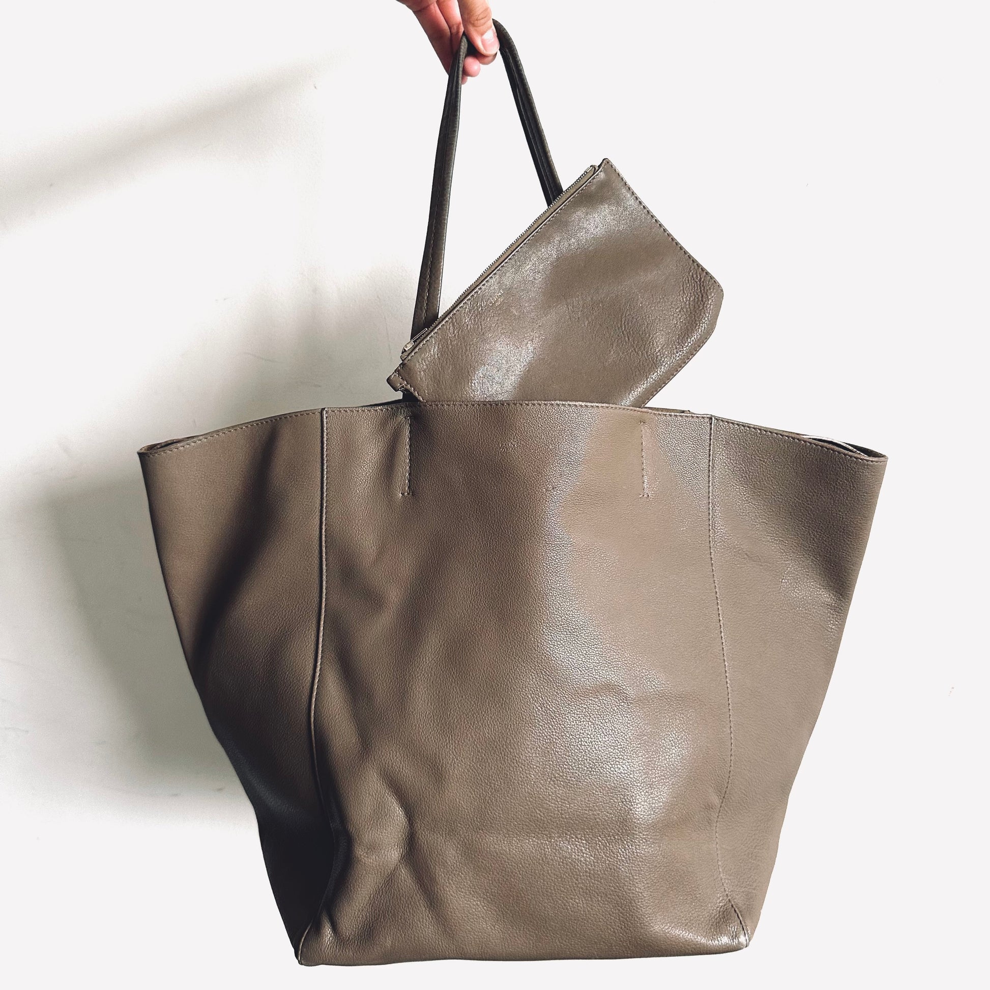 Celine Taupe Cabas Phantom Monogram Logo Shopping Shoulder Tote Bag With Pouch Soft Grained Calfskin