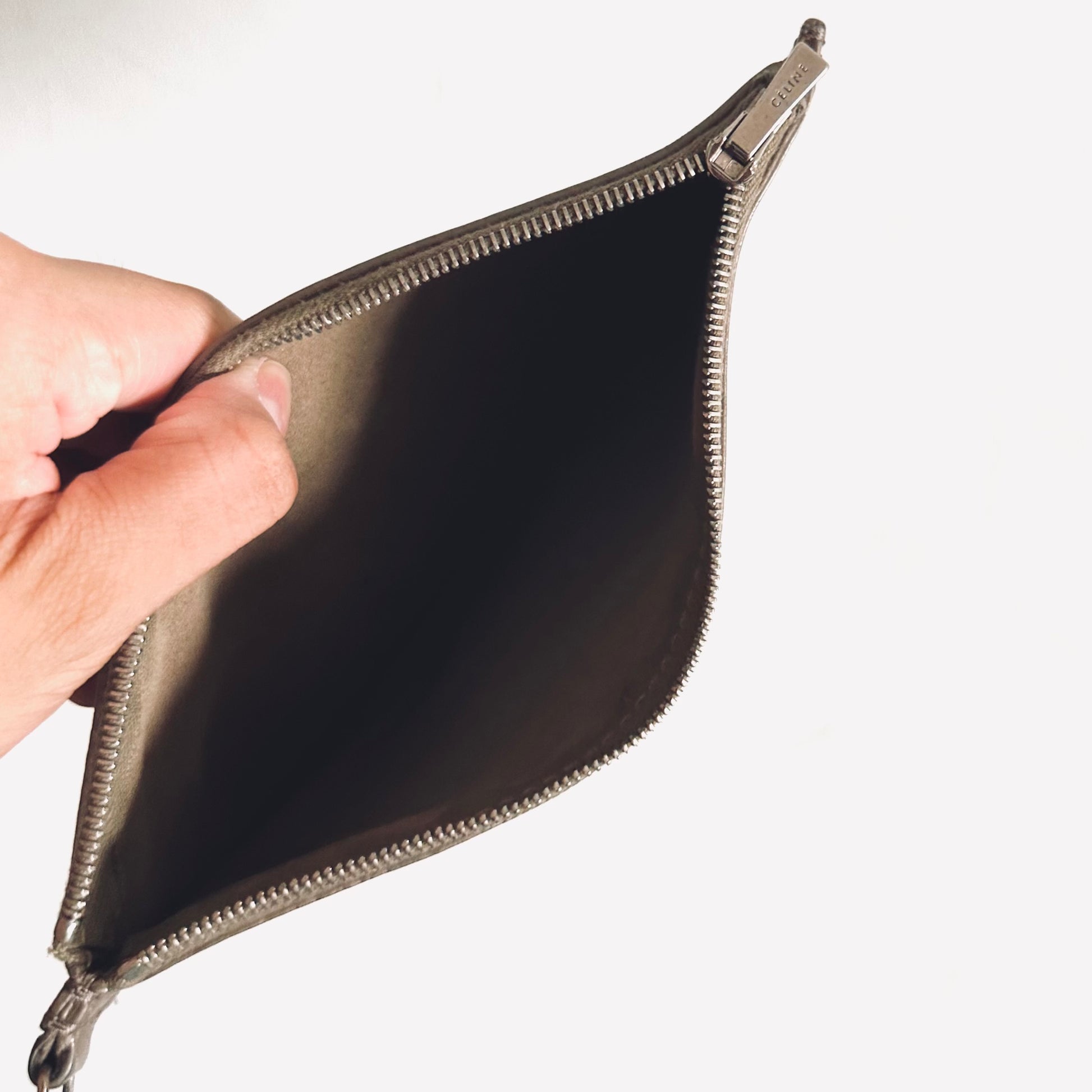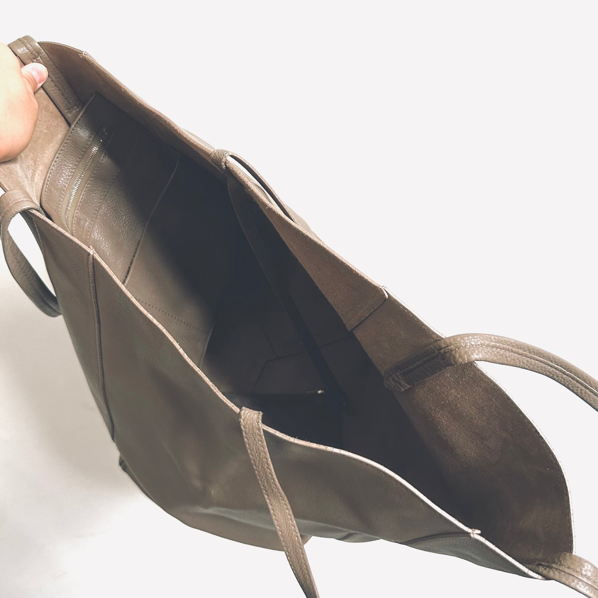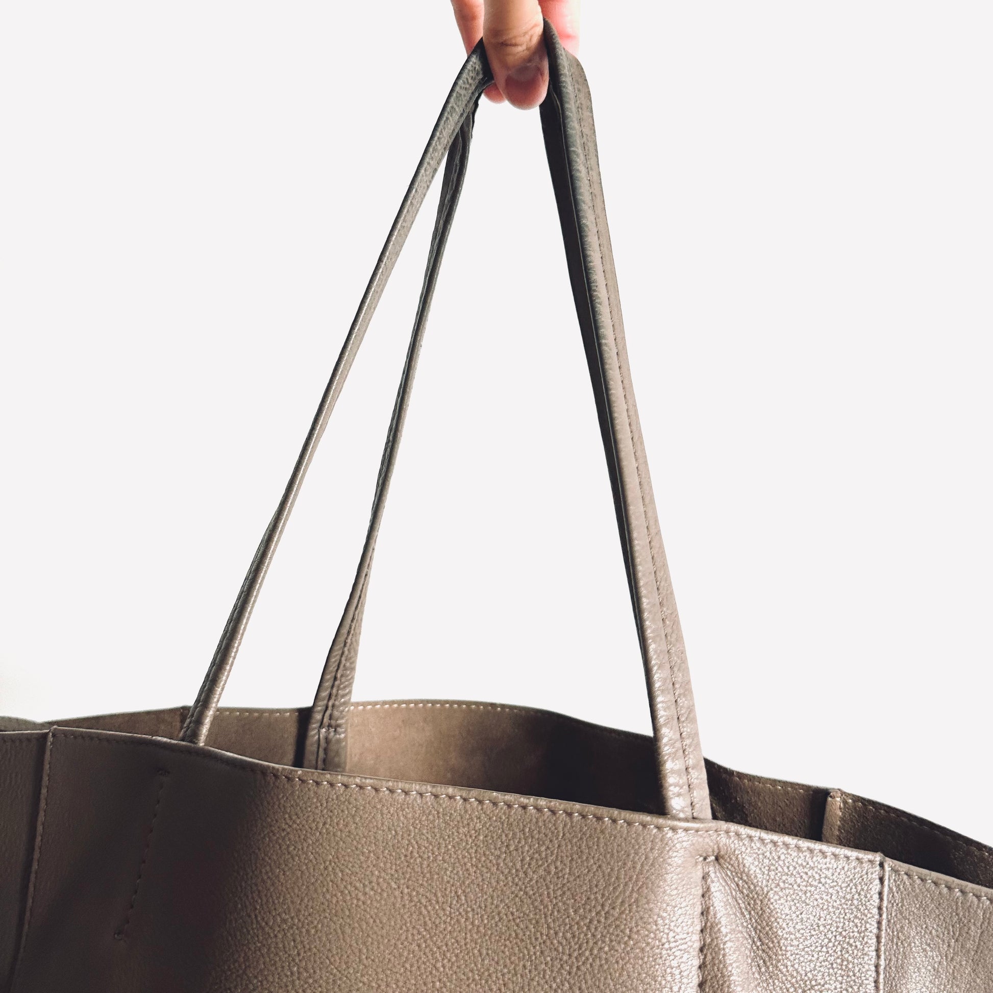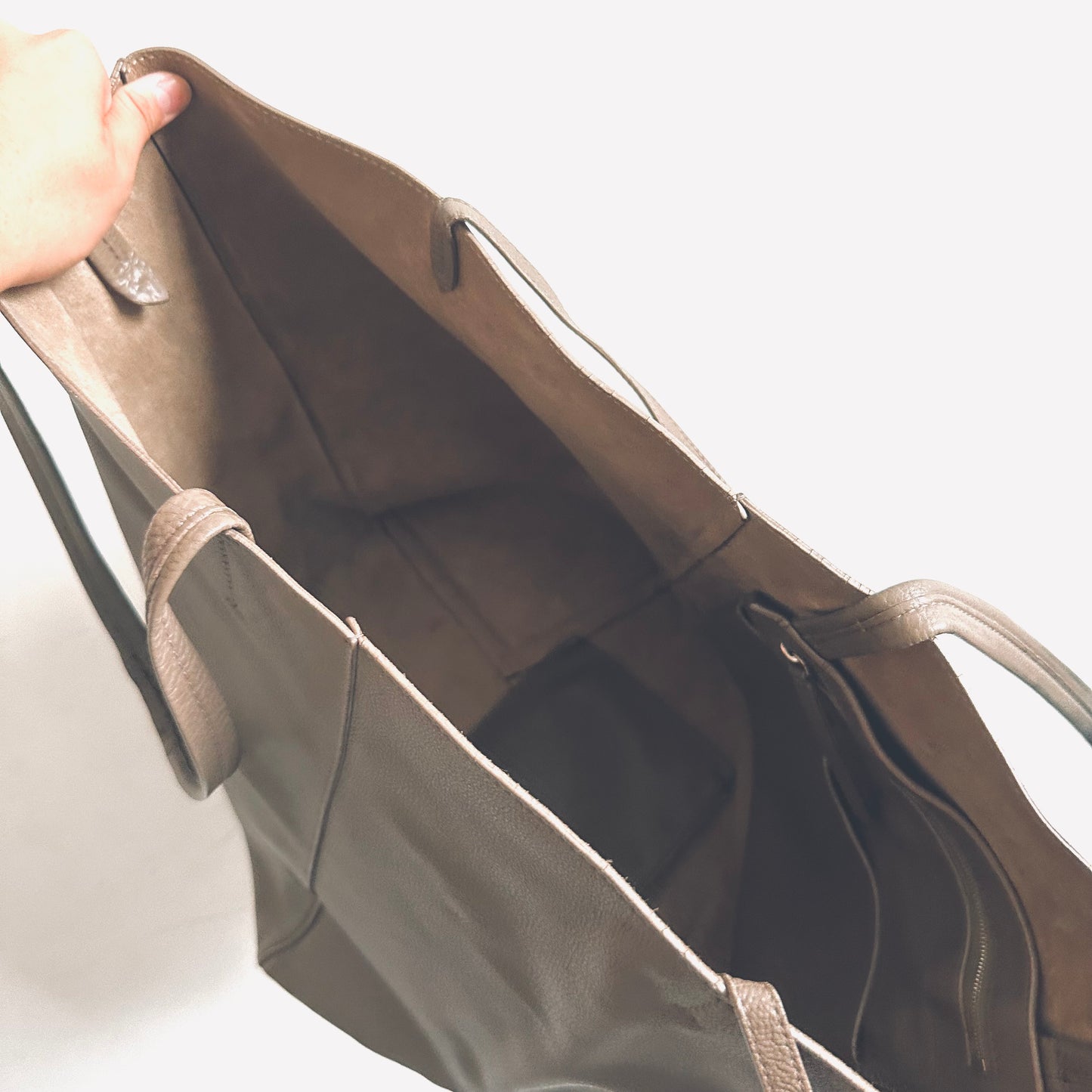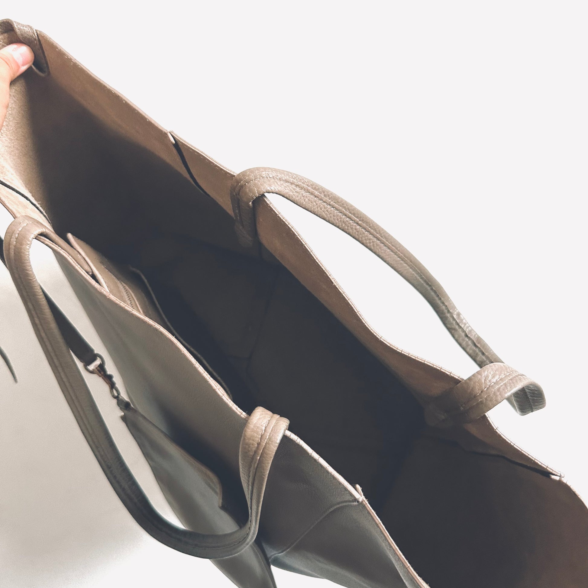 Celine Taupe Cabas Phantom Monogram Logo Shopping Shoulder Tote Bag With Pouch Soft Grained Calfskin