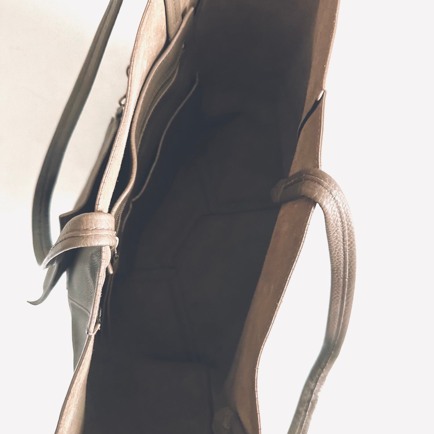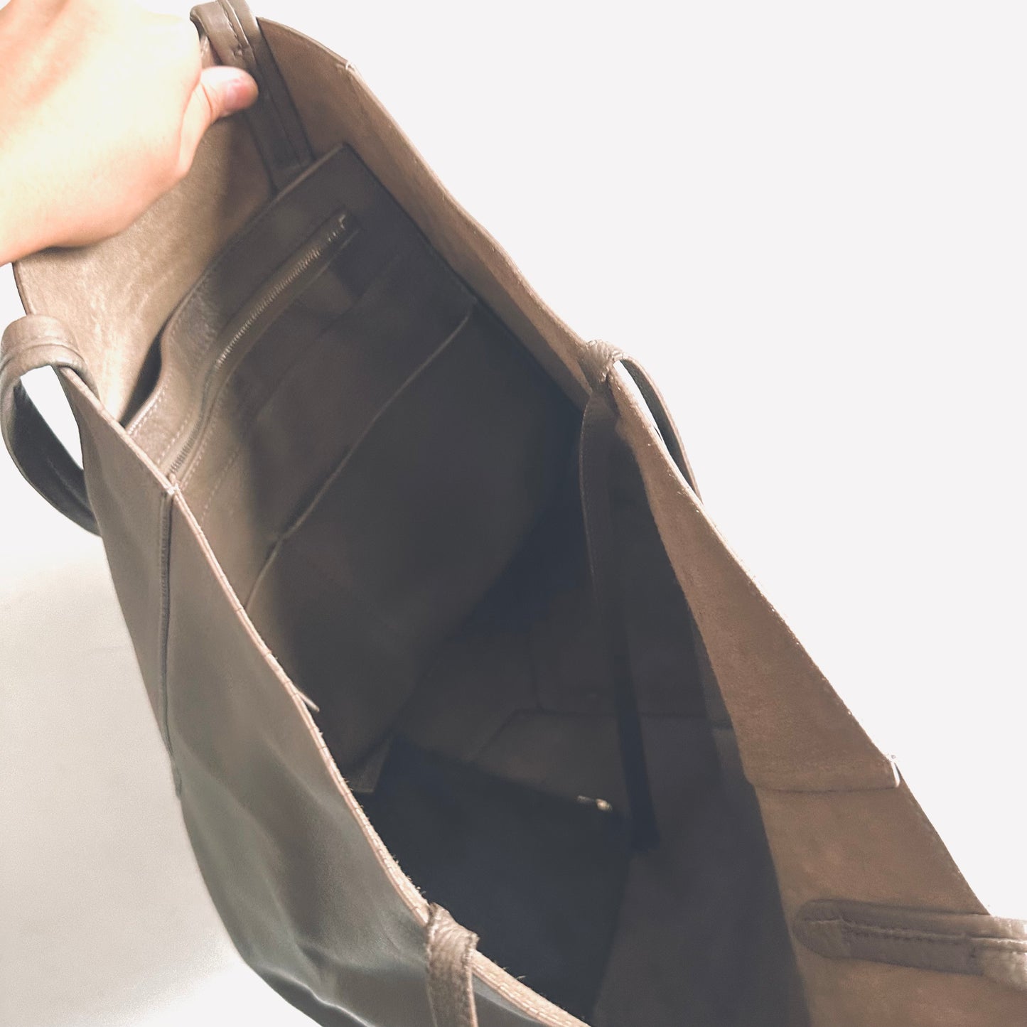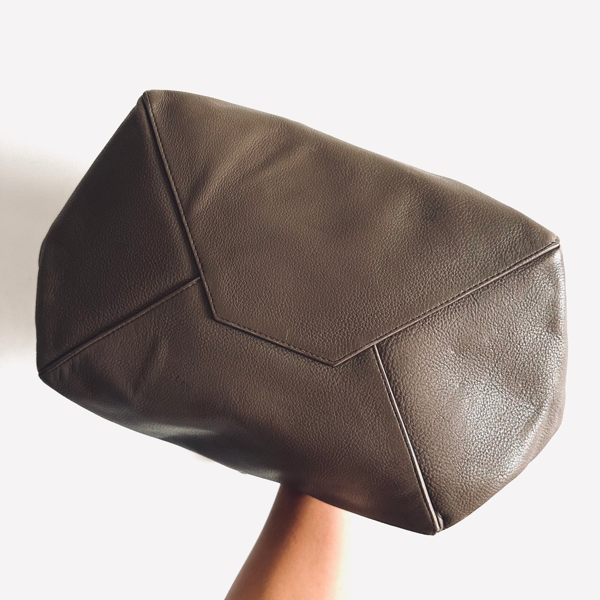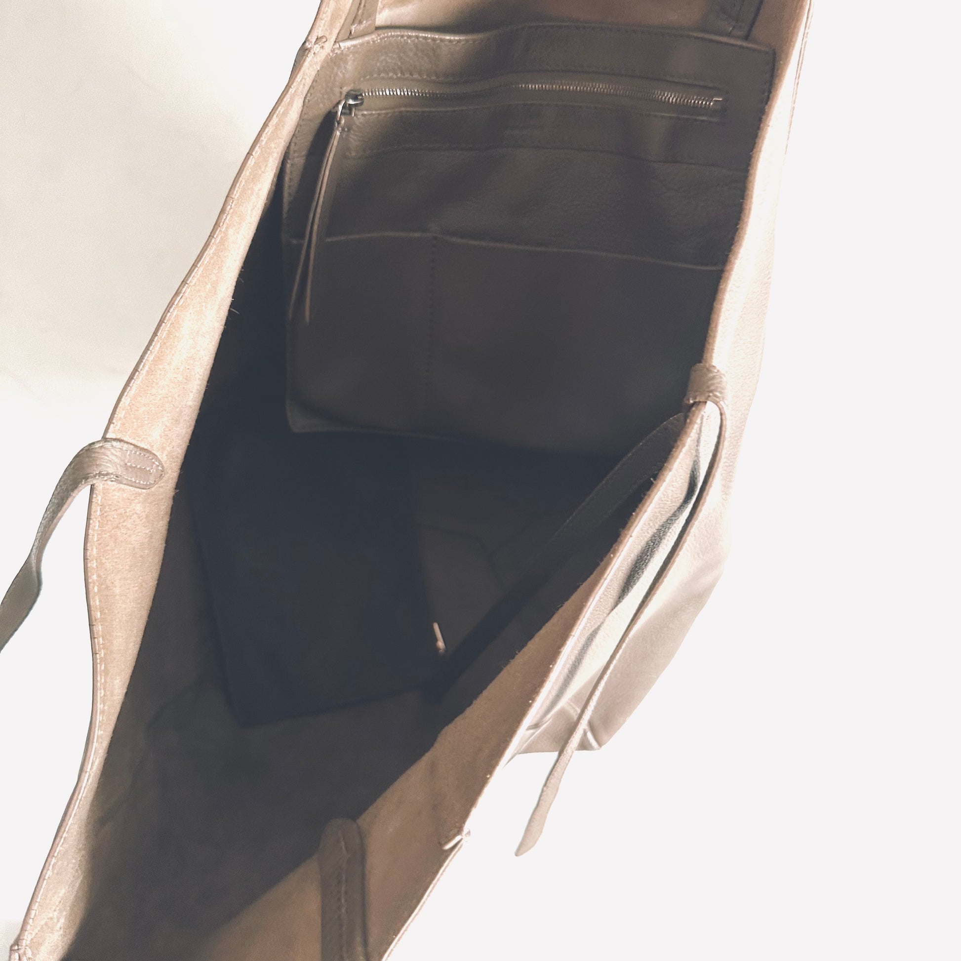 Celine Taupe Cabas Phantom Monogram Logo Shopping Shoulder Tote Bag With Pouch Soft Grained Calfskin
