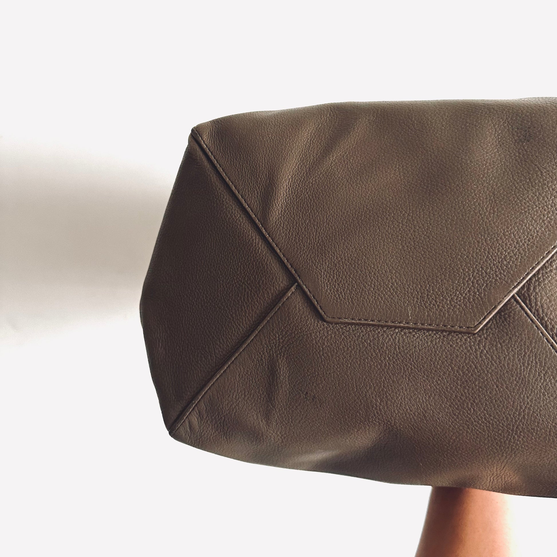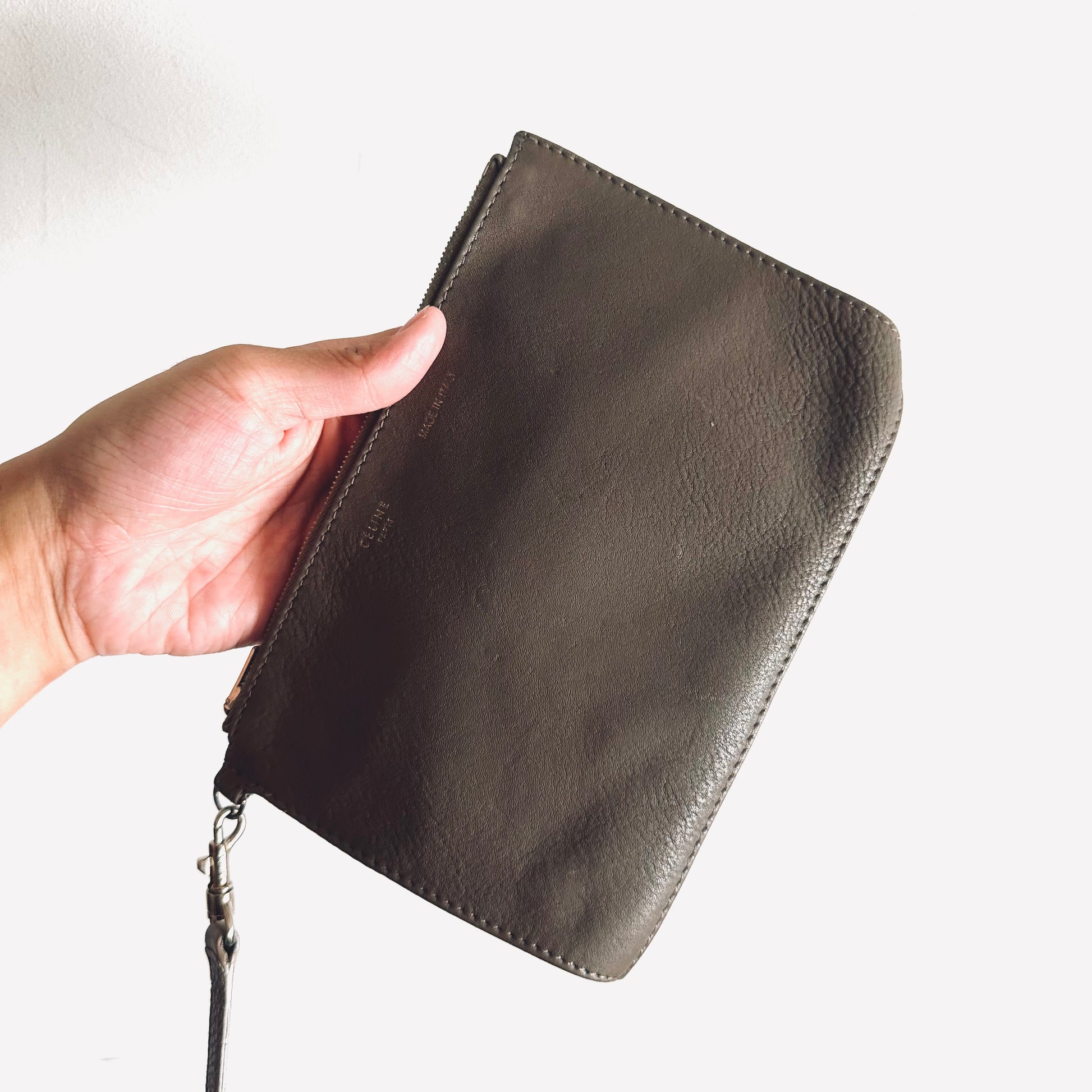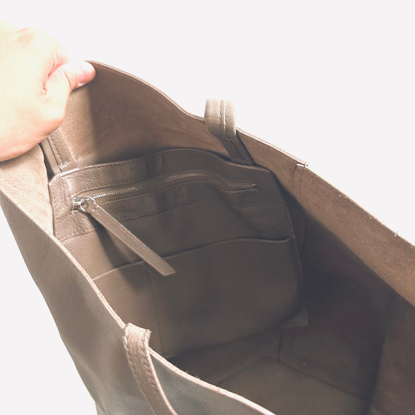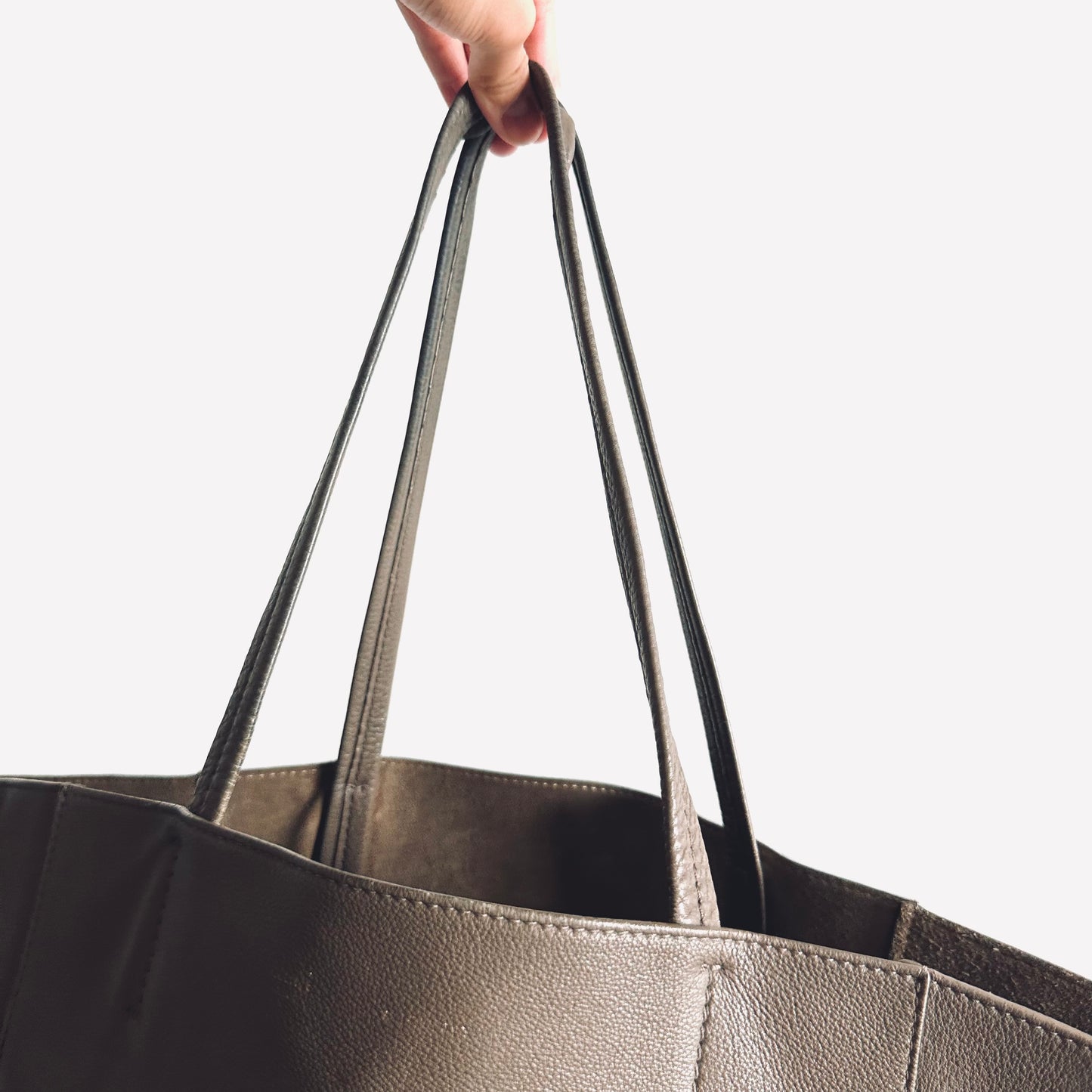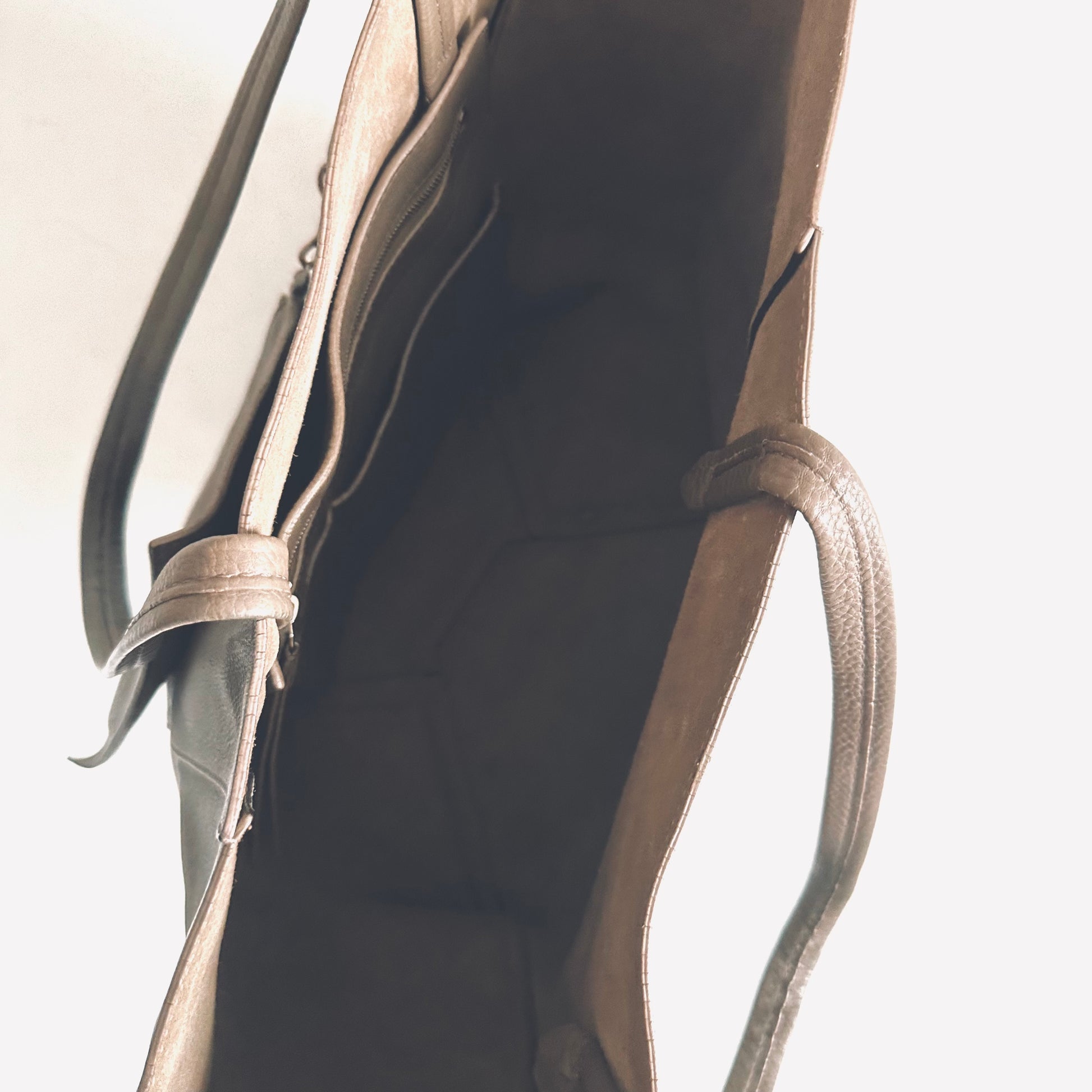 Celine Taupe Cabas Phantom Monogram Logo Shopping Shoulder Tote Bag With Pouch Soft Grained Calfskin