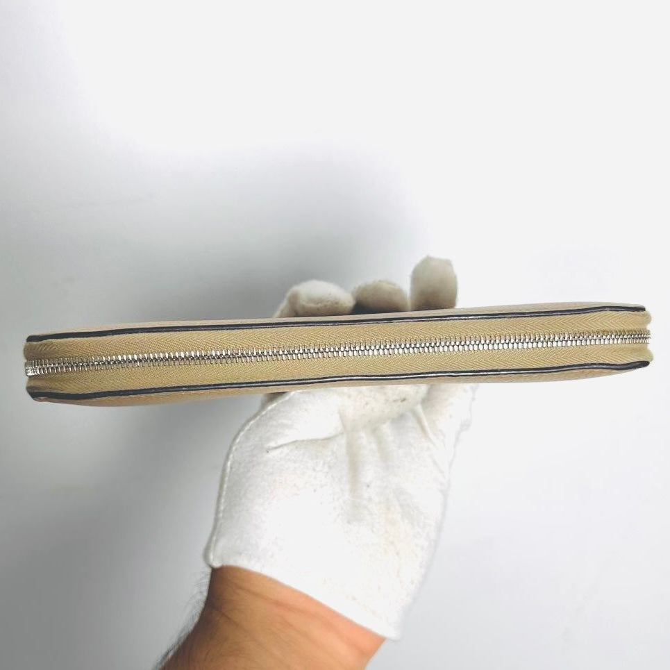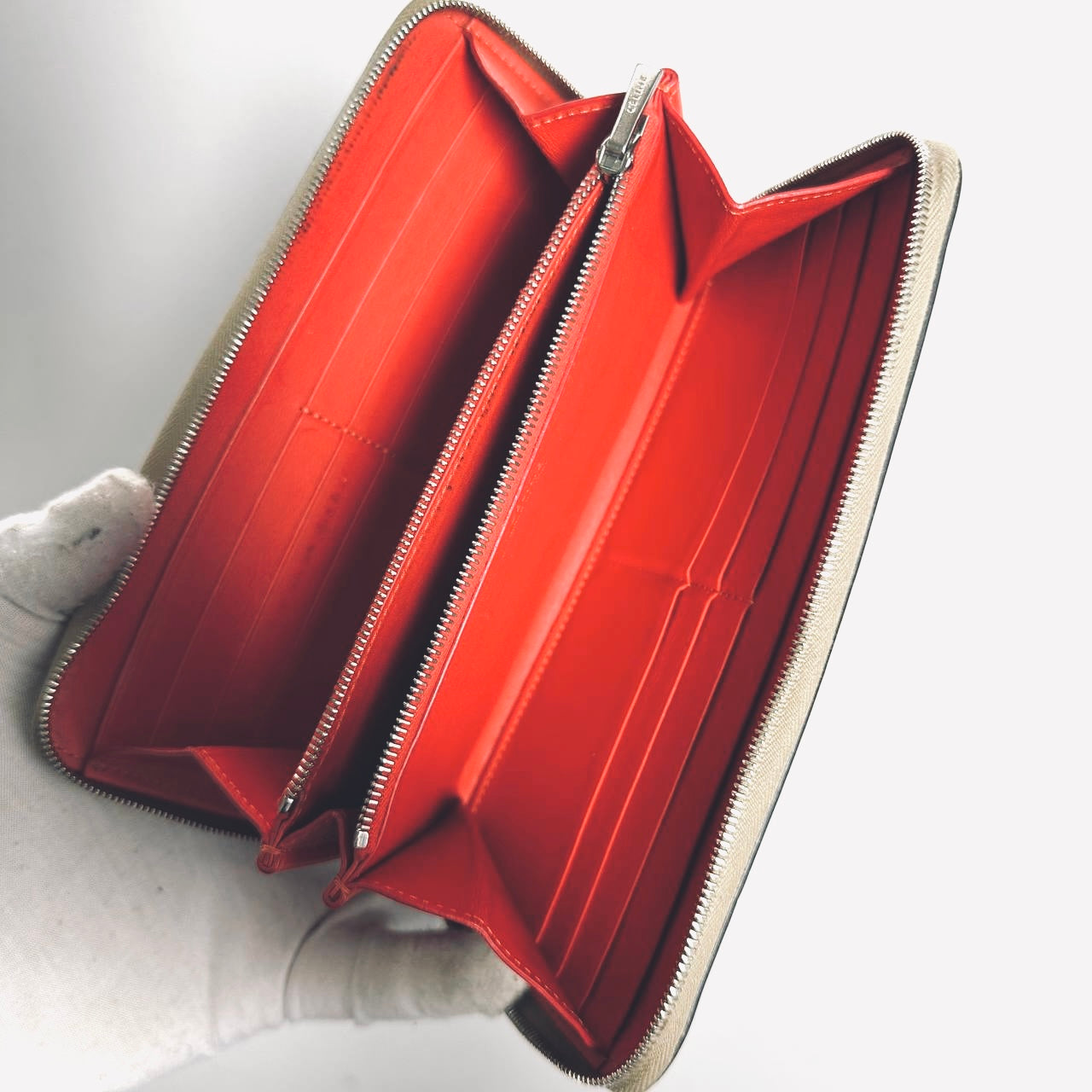 Celine Taupe Logo Drummed Calfskin Leather Large Zippy Zip Around Long Wallet