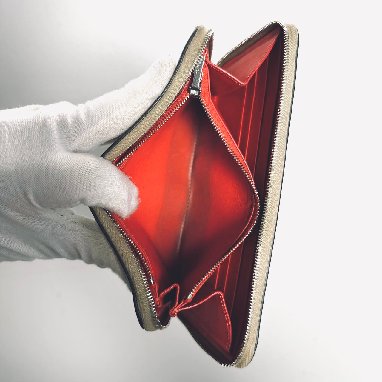 This has a zip around closure, middle zip pocket, notes compartments, card slots and slip pockets. This measures 19x10x2cm. This comes with front logo, clearly engraved hardware, interior stamping, date code, enevlope, card, dustbag and box.
