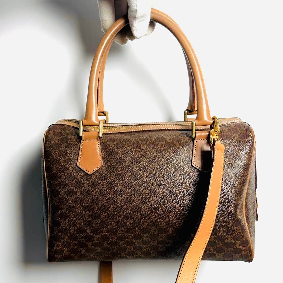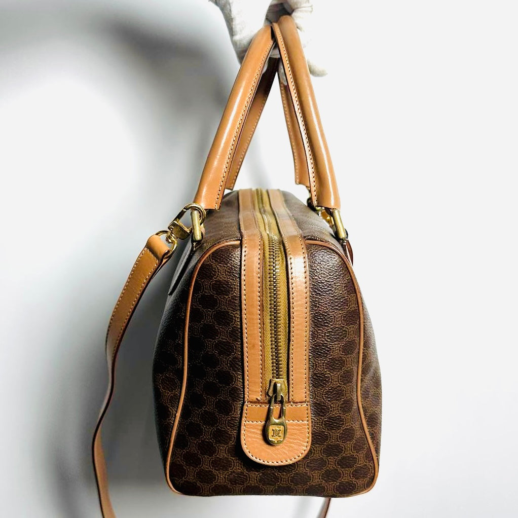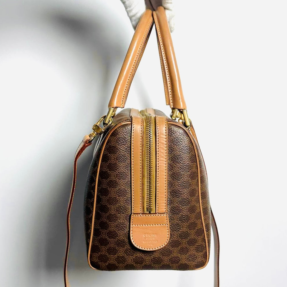 Celine Triomphe Macadam Monogram Logo GHW Boston Speedy 25 Bandouliere Shoulder Sling Top Handle Vintage Bag