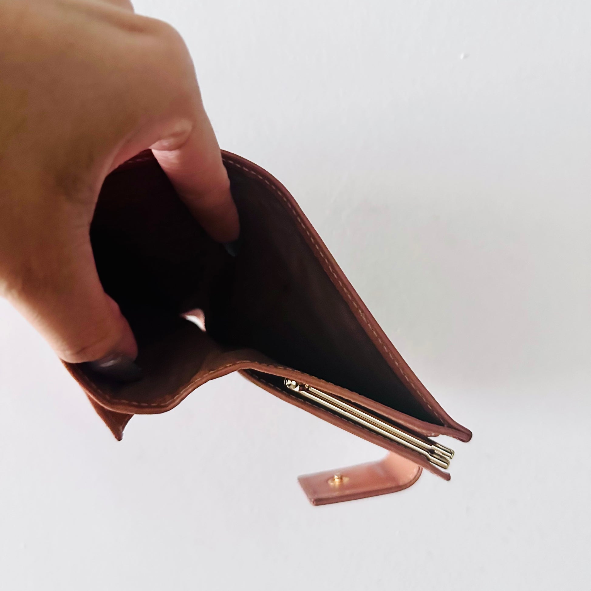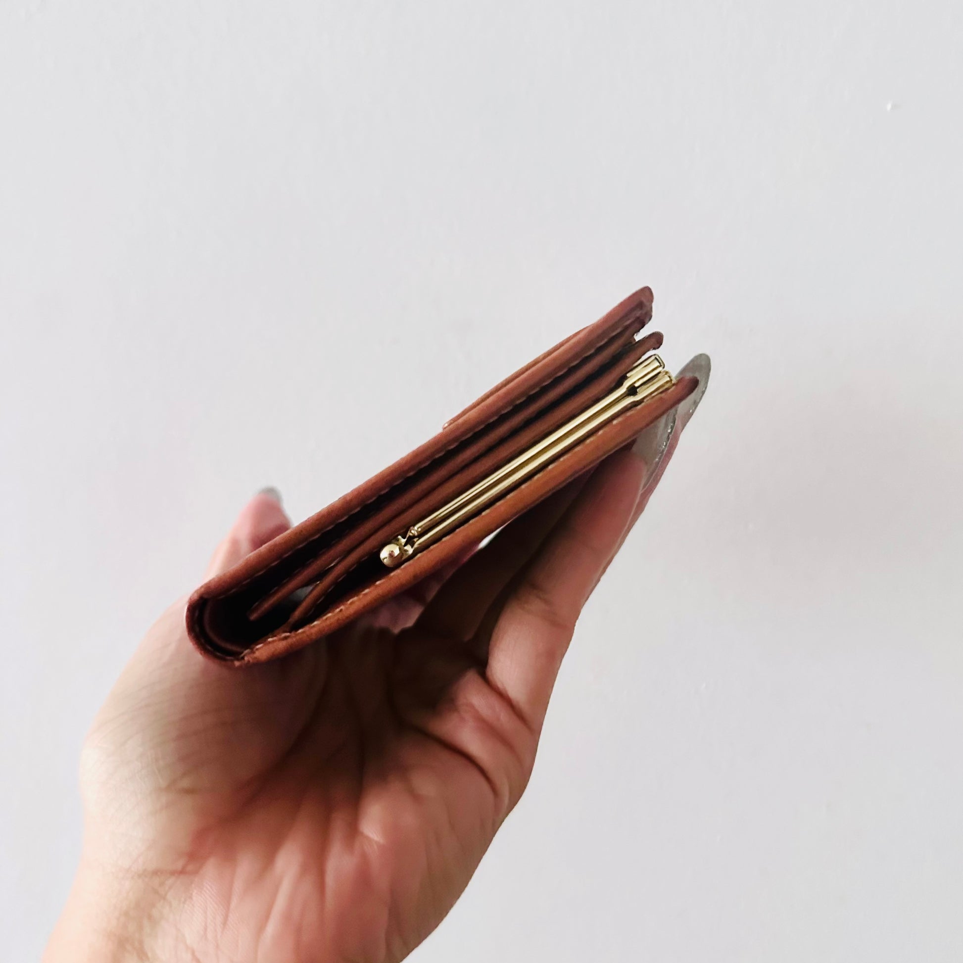 Preloved 9.6/10. This has a flap button closure, notes compartment, card slots, clasp coin pocket and slip pockets. This measures 12.5x10x1cm