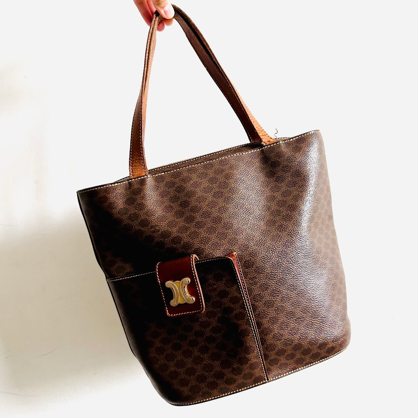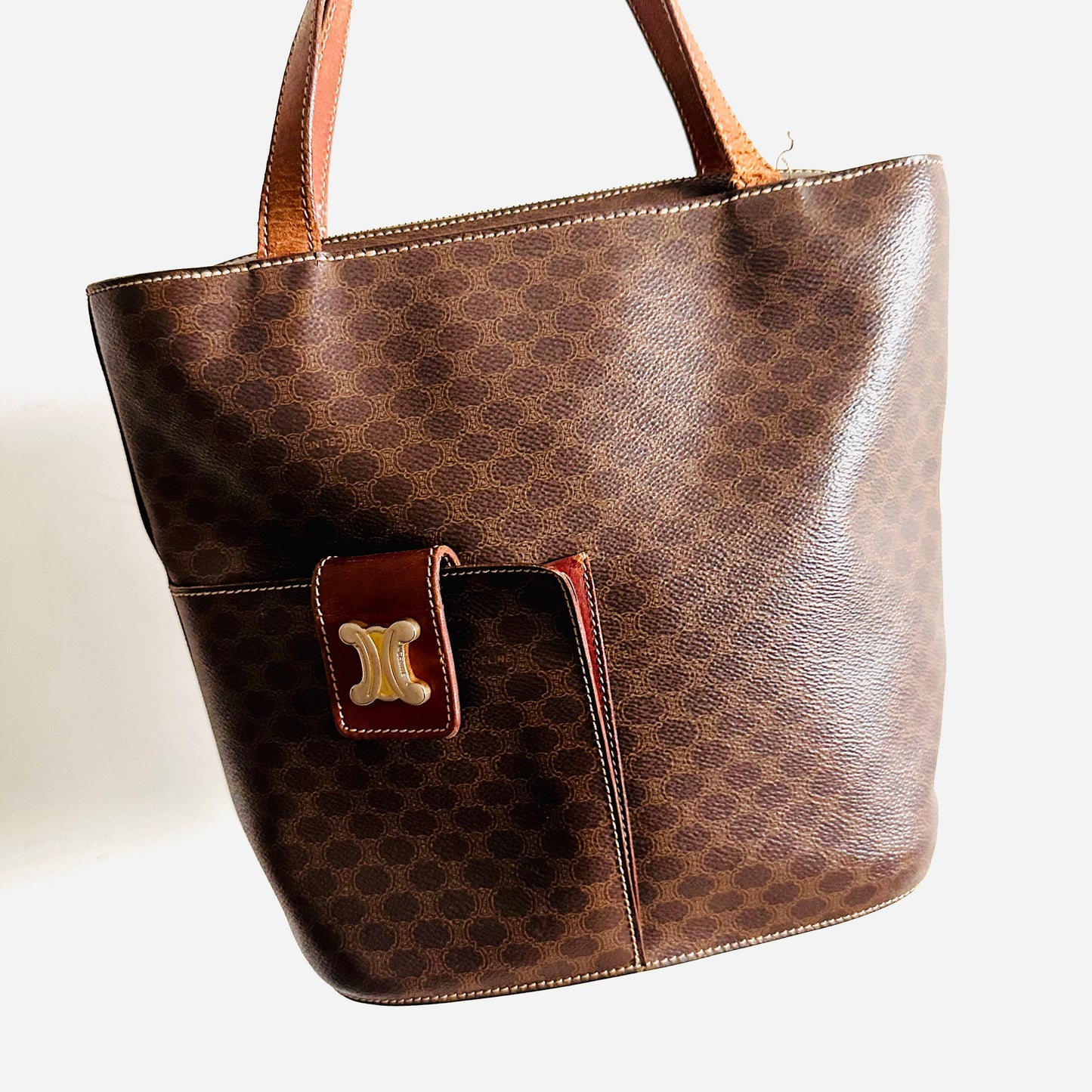 Celine Triomphe Macadam Monogram Logo GHW Pocket Vintage Shoulder Shopper Tote Bag